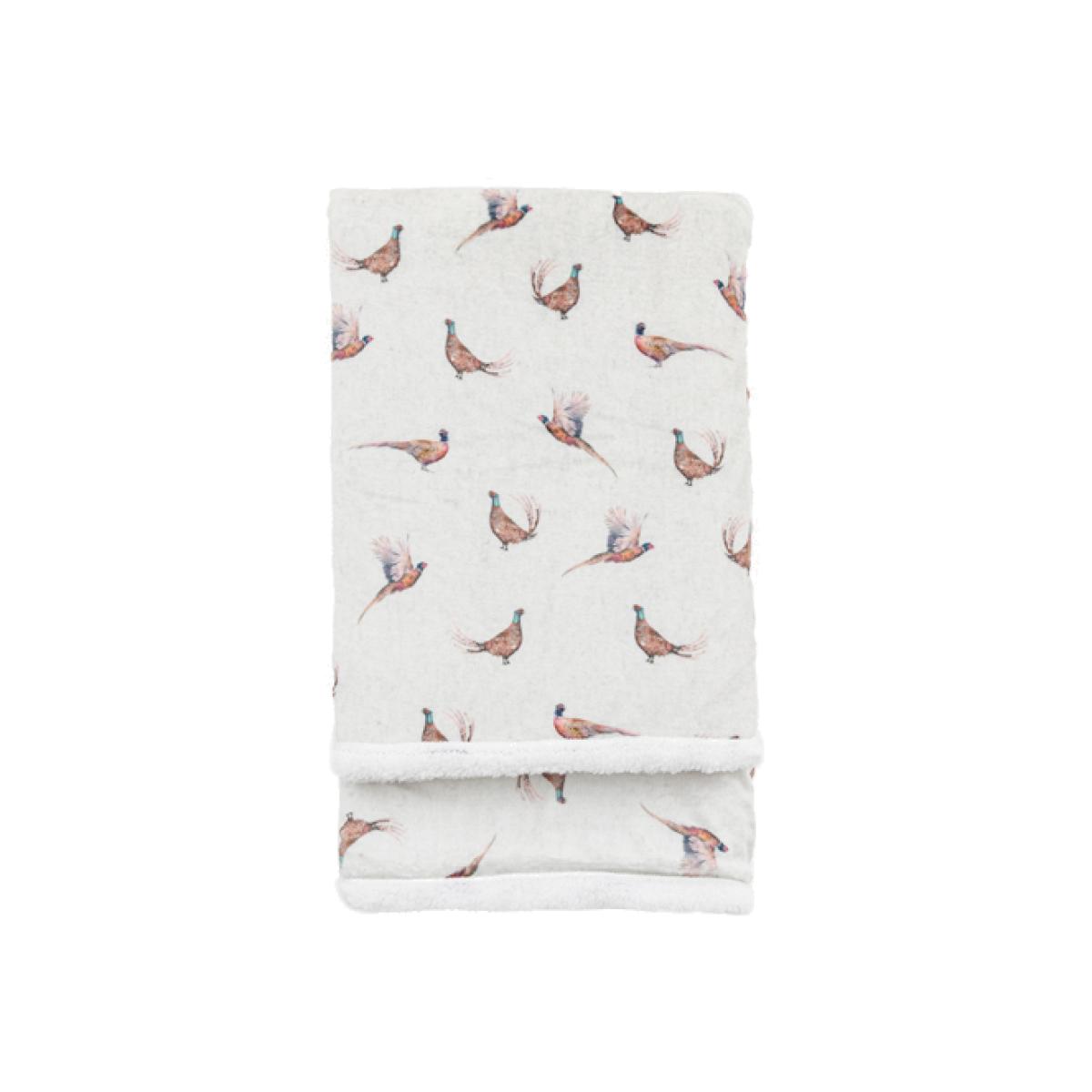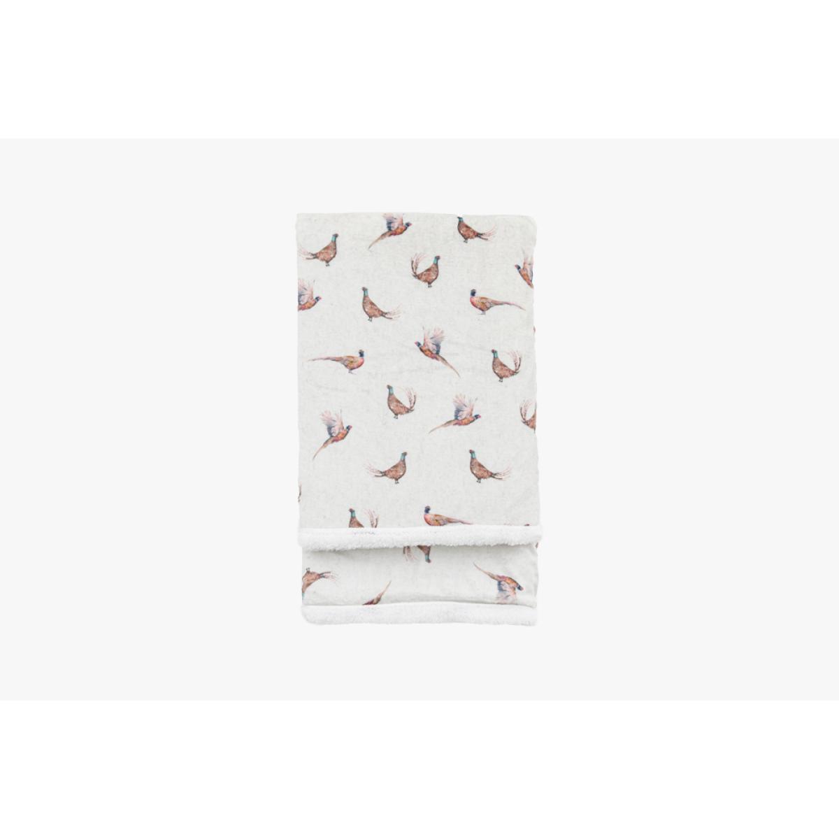 Time to get snug as a bug. Perfect for snuggling up this fluffy fleece sherpa throw is super warm and cosy, just right for keeping out the cold on a chilly evening. Adorned with a bevy of hand painted watercolour style pheasants this is one of the most charmingly cosy blankets you'll see, it'll be hard to resist snuggling up.