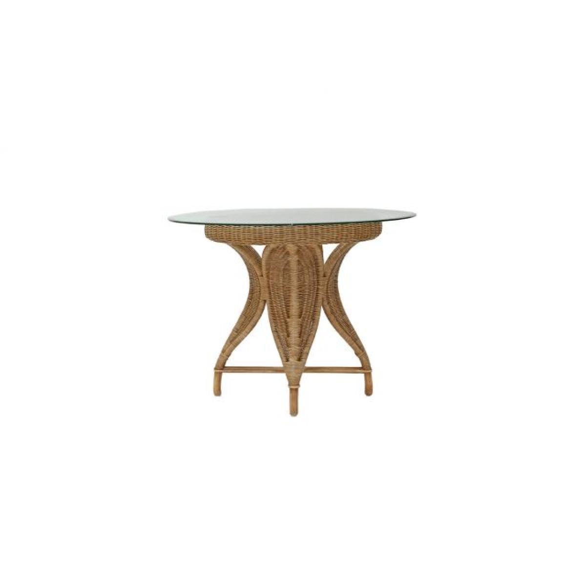 The Daro Waterford Round Dining Table Natural Wash. The intricately woven base design, supports an 8mm bevelled and polished safety glass top which is available in two sizes. The 85cm diameter top is ideal for two people dining, while the 100cm top adequately seats four. Exclusive hand crafted design Available in 85cm or 100cm round Dimensions: 85cm Table: 75cm (H) x 85cm (D) 100cm Table: 75cm (H) x 100cm (D) 2 Year Manufacturer's Guarantee  All screens vary in colour reproduction and whilst every effort has been made to display the colour as accurately as possible it is for guidance only.