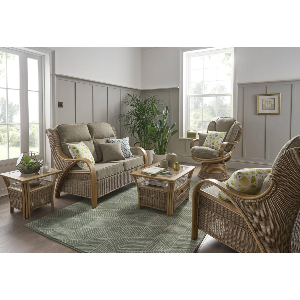 Dundee's sweeping curves in natural wash rattan, smooth planed cane arms and luxurious cushions create a classic look. With several seating options, it's easy to create layouts suitable for both bigger and smaller living spaces. The comfortable Swivel Chair looks great in a sunny corner. Exclusive hand crafted design Cushions made in the UK Also available in Frame only (cushions not included) Dimensions: 117cm (H) x 104cm (D) x 77cm (W) 2 Year Manufacturer's Guarantee  All screens vary in colour reproduction and whilst every effort has been made to display the colour as accurately as possible it is for guidance only.