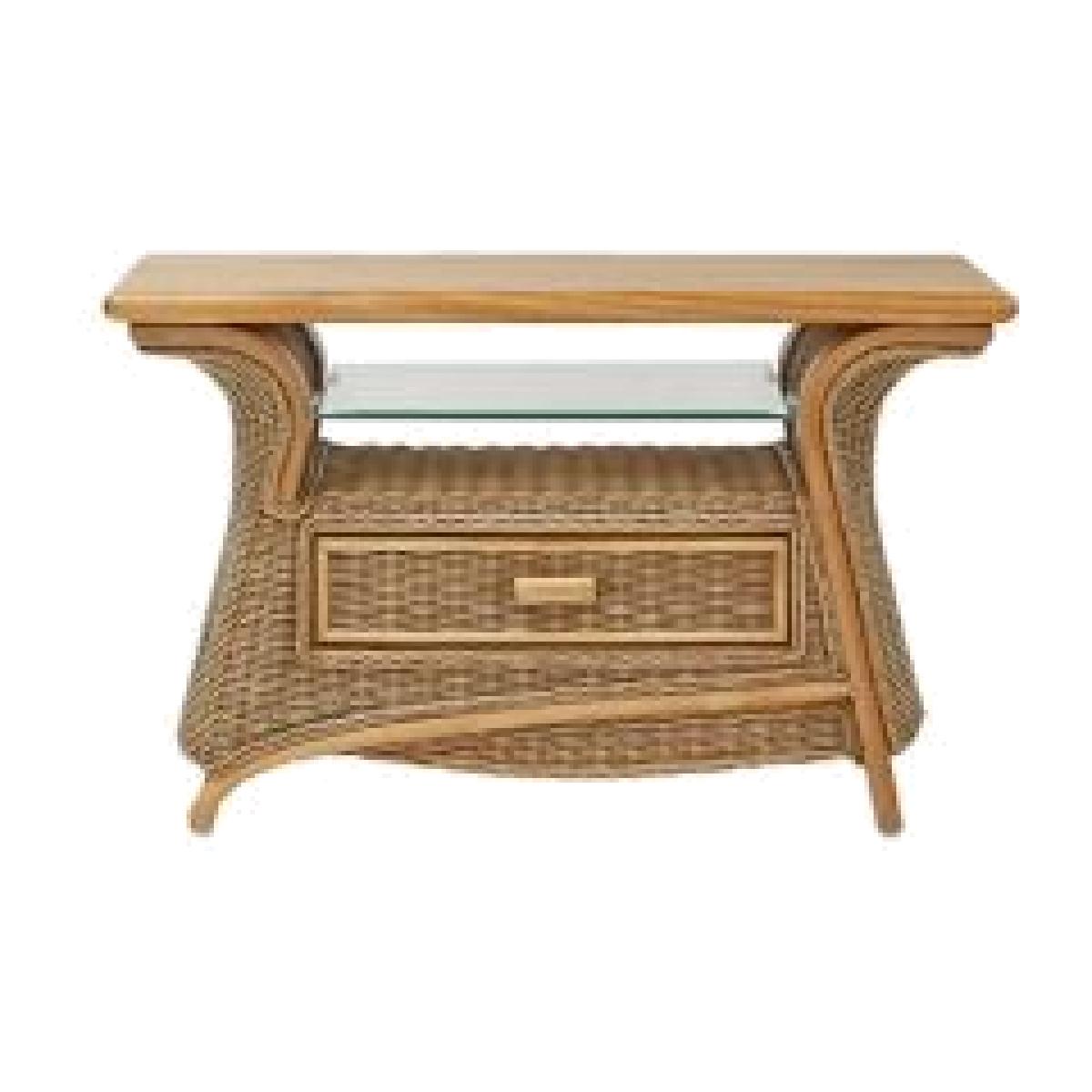This beautiful hand crafted Daro Waterford TV/DVD Unit Natural Wash has been designed with style and practicality in mind. Featuring natural cane legs and panelled with a beautiful rattan weave design, this unit complements the Waterford range of furniture perfectly. Finished with an oak top and an additional 2 shelves and a drawer for extra storage. Exclusive hand crafted design Dimensions: 52cm (H) x 40cm (D) x 84cm (W) 2 Year Manufacturer's Guarantee  All screens vary in colour reproduction and whilst every effort has been made to display the colour as accurately as possible it is for guidance only.