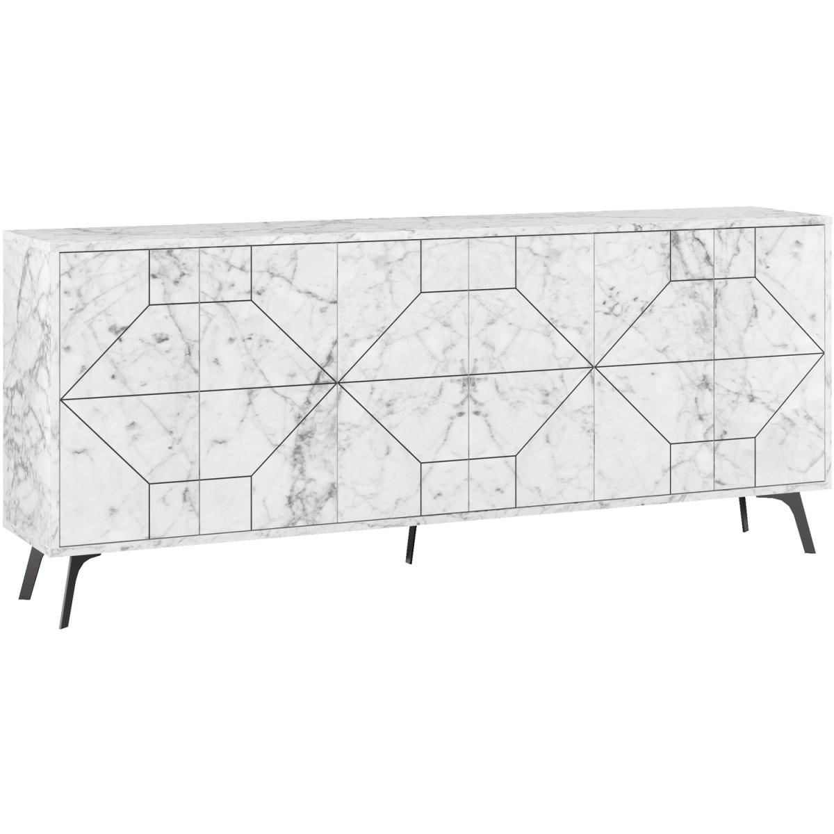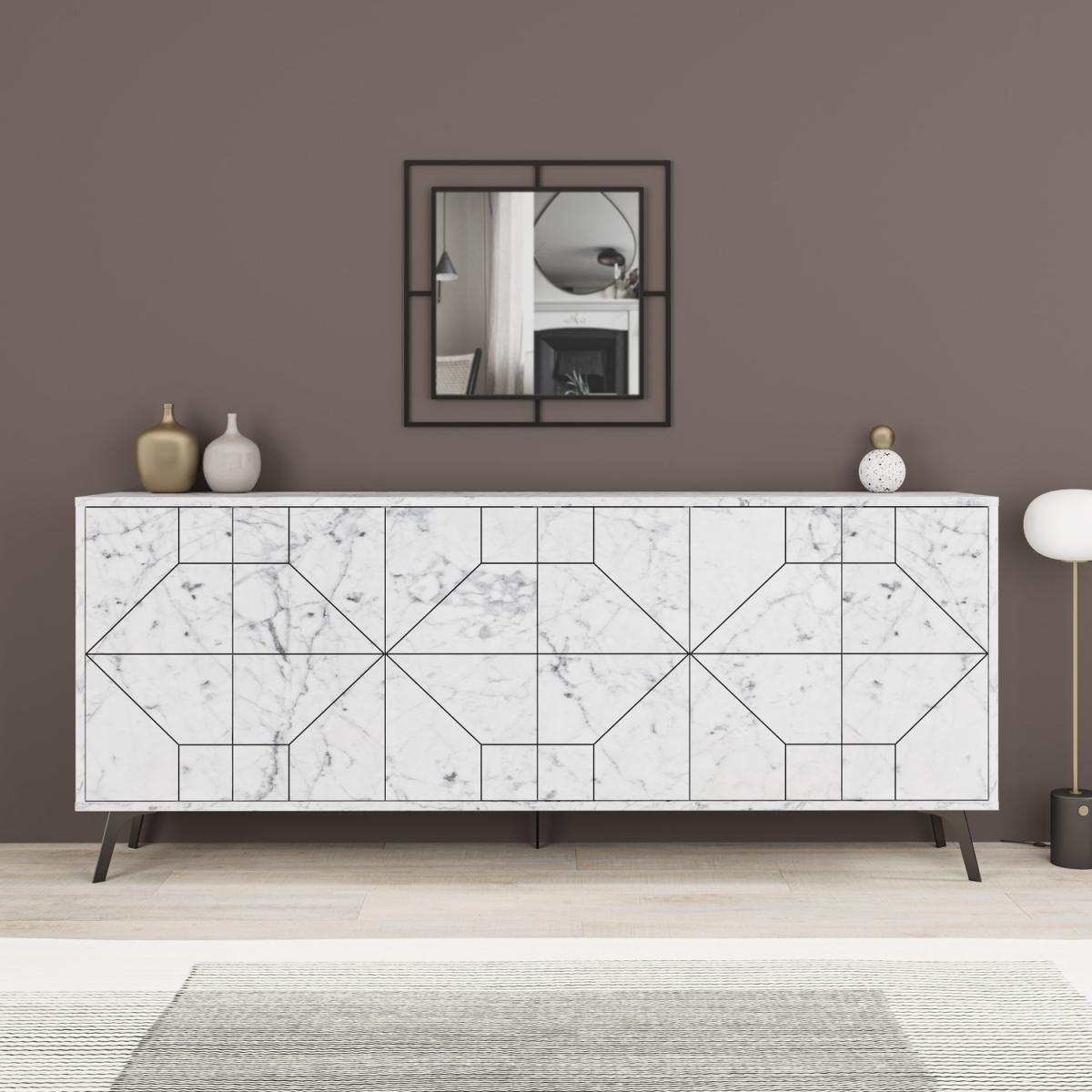 This chic sideboard is a wonderful addition to any home. It has unique metal legs that give it character and ample storage space to keep your belongings organized. You can choose from multiple color options to match your decor. Although assembly is required, all fittings and fixings are included to make it easier for you. Cleaning is a breeze, just use a damp cloth without any harsh chemicals. The sideboard is made of high-quality engineered wood with a protective melamine finish and comes with a 2-year manufacturer guarantee. For added safety, a tip-over restraint device is included. The sideboard is shipped in secure packaging to make sure it reaches you in perfect condition, and clear instructions make it easy to assemble. Its dimensions are 184 x 35 x 78 cm.
