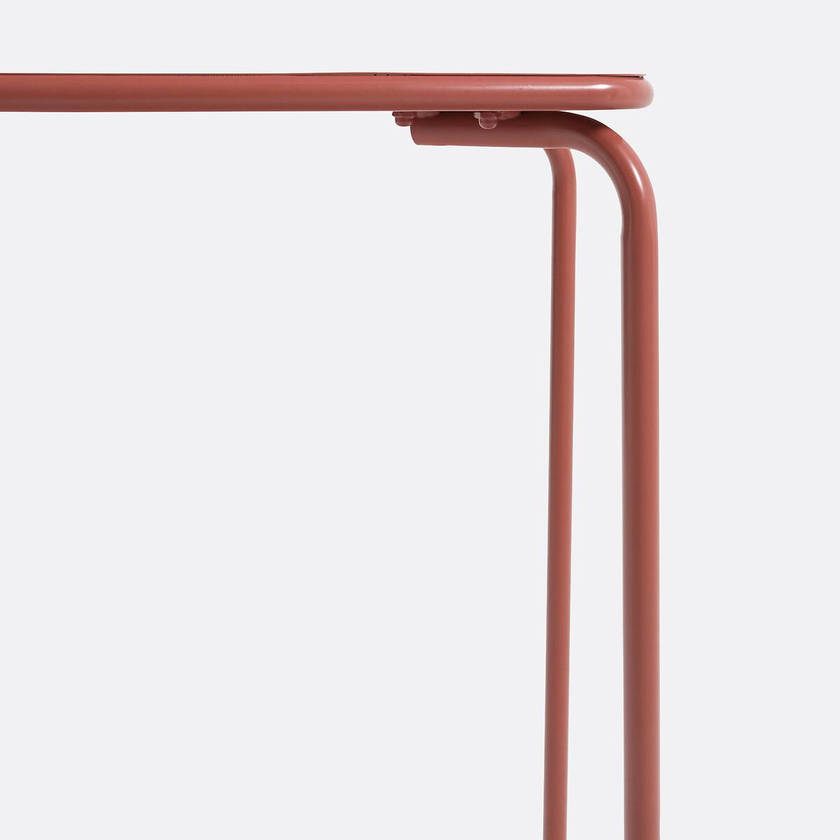 The pop of colour is perfect for the garden! Light and easy to store, the Dune table adapts to all spaces: terrace, balcony, garden... Make outside a welcoming space. Product Details • Made from tinted galvanised steel, epoxy finish • PVC pads under the feet. Dimensions • Width: 70cm • Height: 74.8cm • Depth: 70cm • Weight: 13kg. Dimensions and weight of parcel1 parcel • L76 x H12.5 x D76cm. 15.6kg.