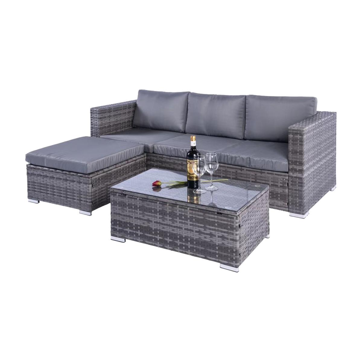 Complete your garden with this gorgeous rattan sofa set. Coming in a contrasting colours to match any surroundings, this corner sofa set will fit perfectly into any modern or contemporary garden and is easy to maintain. Seating comfort can either be enhanced by using the centrepiece coffee table or calling it a day & relaxing on the sofa itself with the deep-cushioned seat pad. A classic choice for outdoor living, this beautiful corner set will look the part in any contemporary or traditional garden. Made from all-weather garden fabric to withstand British weather! Tempered glass tabletop ensures durability and makes it easy to wipe clean. Weather and water-resistant cushions (Please read care label - bring cushions indoors in harsh weather conditions).