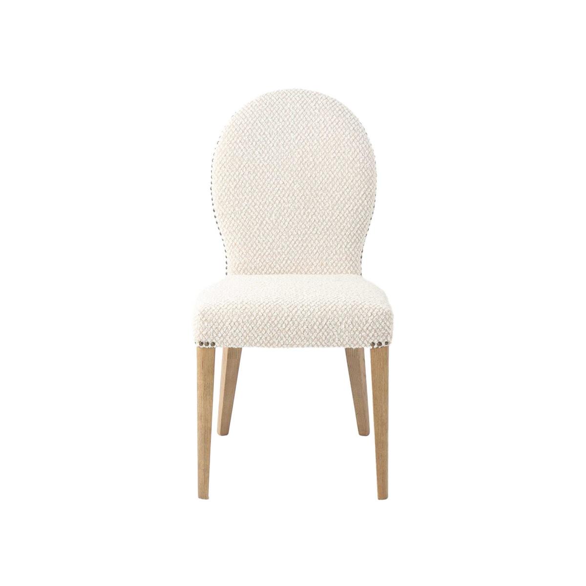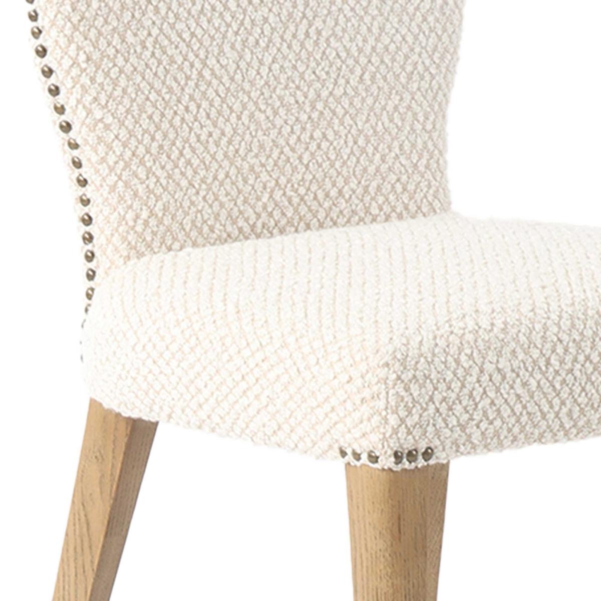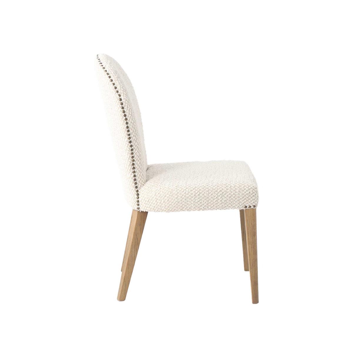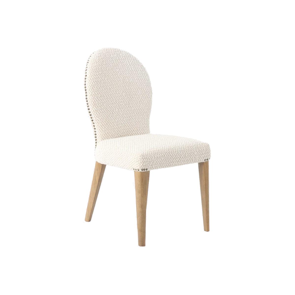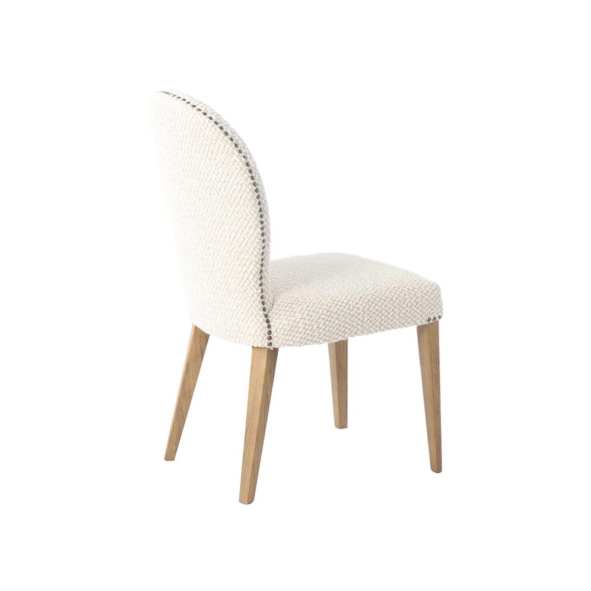 The Dunham Dining Chair brings classic charm and subtle elegance to any room. Its textured cream upholstery offers a cosy feel, while the rounded backrest adds both comfort and style. Featuring a sleek studded trim along the edges, the chair is supported by sturdy wooden legs with a natural finish, making it a versatile addition to both traditional and contemporary spaces. Whether used around a dining table or as an accent chair, the Dunham offers durability and refined beauty for everyday living.