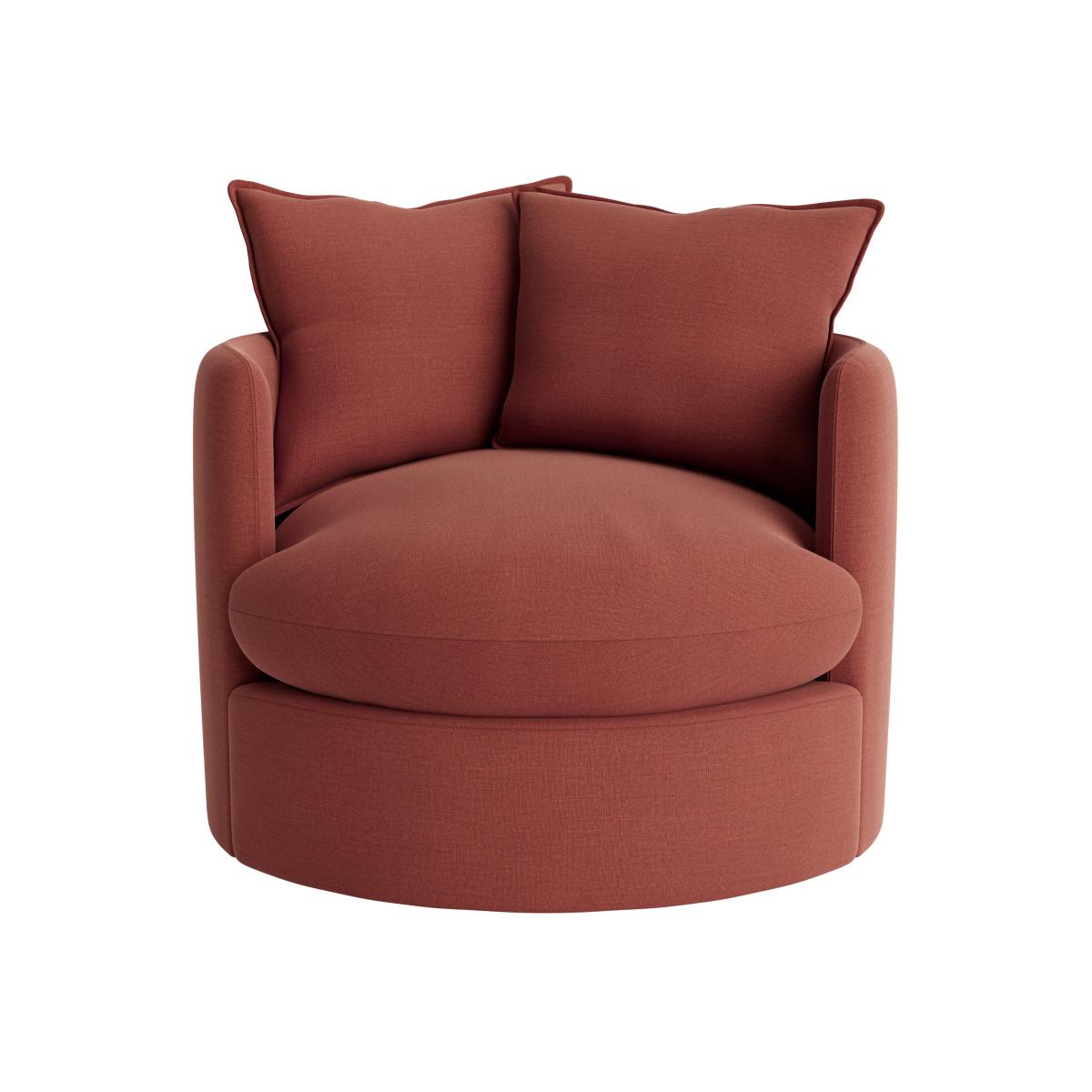 I love the Dunkins swivel armchair for its bold, playful colour that can really lift a room, especially in a contemporary or eclectic interior. Its Summer Pudding shade pairs beautifully with neutral tones or complementary shades like soft greys, muted pinks, or deep charcoals. Practical styling tips include using it as a statement piece in a cosy reading nook or pairing it with layered textured cushions for added comfort. Since it swivels, it makes a versatile addition to social spaces or small apartments, helping to facilitate easy conversation and movement. Its rounded shape and plush fabric give it a relaxed, inviting vibe that works well across casual and sophisticated settings alike.