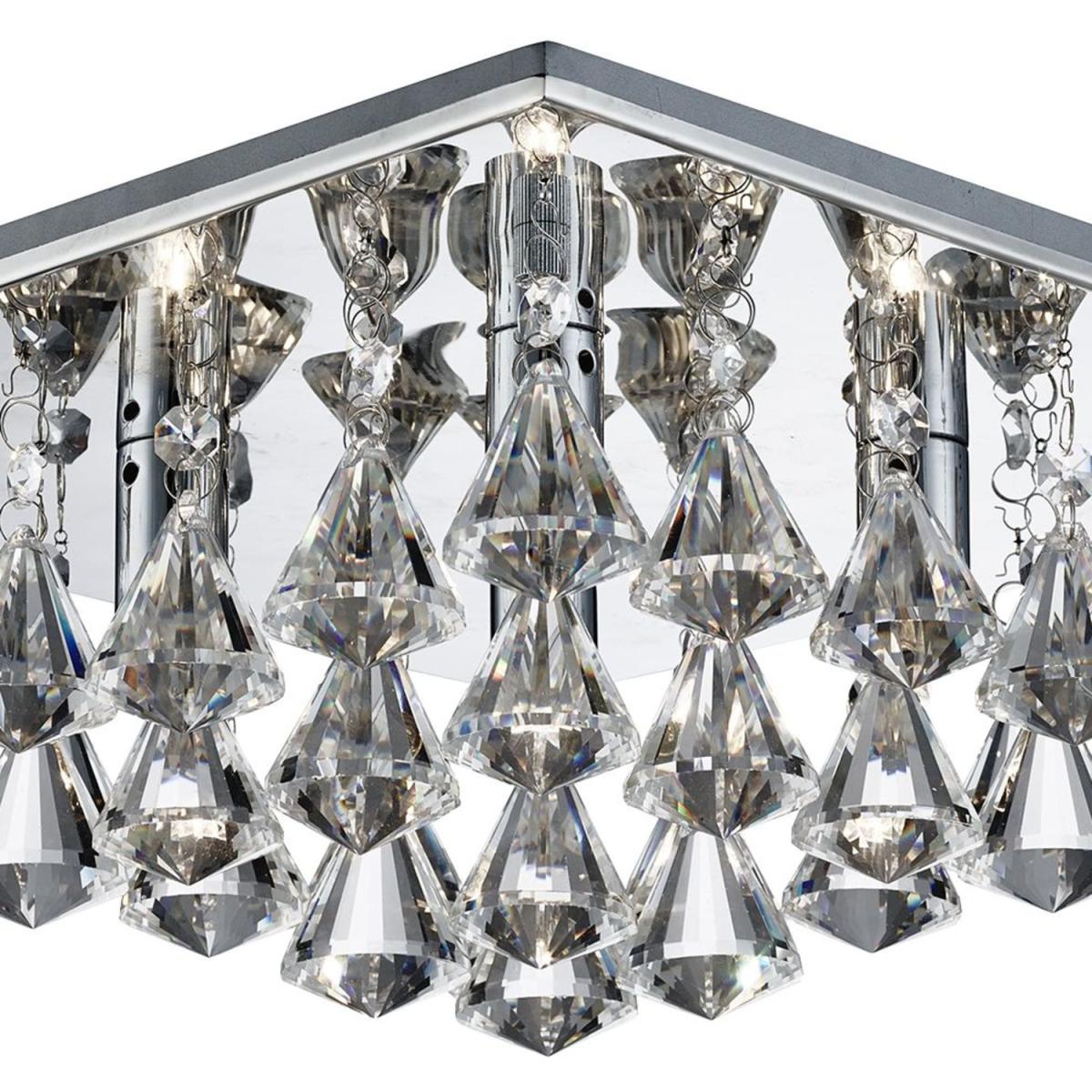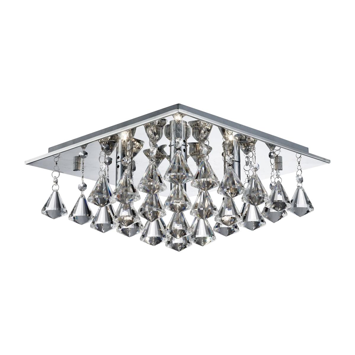 This chrome 4 light square ceiling fitting with clear crystal pyramid drops looks graceful on any ceiling.