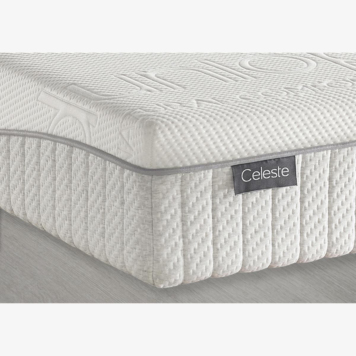Enjoy a heavenly night’s sleep on a Celeste mattress. Latex is a natural material made from the sap of sustainably grown rubber trees. Its open cell structure is made of millions of microscopic air bubbles providing pressure relief, support and constant air circulation. Seven comfort zones allow your spine to align. Perfect with the Signature collection bases, these firm support mattresses fit any standard size bedframe. Enjoy a celestial night’s sleep. The Celeste mattress from Dunlopillo has a latex core, with millions of microscopic air bubbles providing springy support and constant air circulation. Why you’ll love it • Cooling, springy latex mattress from Dunlopillo. • Firm support. Instant pressure relief soothes muscles. • Breathable, responsive latex core allows air to circulate. • All natural latex is anti-allergenic, anti-bacterial, anti-microbial and resilient. • Seven pressure-relieving comfort zones align the spine. • Actipro™ technology eliminates unwanted allergens, unpleasant odours and reduces bacteria. What you need to know PLEASE NOTE: this mattress cannot be used on a platform top divan.• Mattress type: Latex. • Depth: 21cm. Base support layer, top comfort layer. Core is 16cm pure latex. • Firmness: Firm. • Fillings: Latex, with open cell structure. • Latex is made from the sap of sustainably grown rubber trees. • Cover: Soft touch, cooling. • Sizes: Single, Small Double, Double, King, Super King. • Requires turning: No. Maintenance free: no need to turn, flip or rotate • Mattress care:After delivery the mattress should be aired for four hours to freshen and remove any aroma from storage. Due to the pressure-relieving properties of the material it may take some time to become accustomed to the level of comfort and support. • It may take time for your mattress to attain its full size. This is due to the mattress being upright during transit. Settlement of fillings and indentations caused by body weight compressing the fillings are natural and not considered defects. The mattress case should not be removed and is not washable • If the mattress is used with a slatted base, the slats must be no further than 7 cm apart.