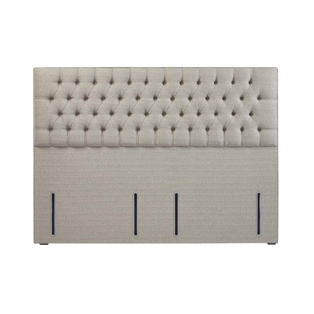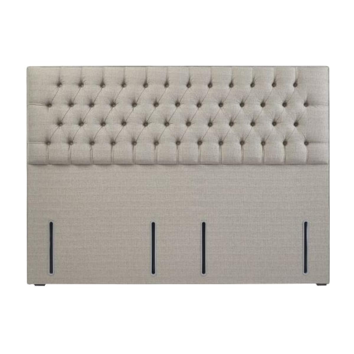 Upholstered headboard in a traditional design with a main panel of beautiful buttons and pleats in a diamond pattern arrangement. Available in two styles bed fix and floor standing. Choose from 28 premium fabrics and have your headboard and base upholstered in the same fabric to create a stylish bed to suit your taste. Bed fix Single W: 90cm H: 70cm D: 7.5cm Small Double W: 120cm H: 70cm D: 7.5cm Double W: 135cm H: 70cm D: 7.5cm King W: 150cm H: 70cm D: 7.5cm Super King W: 180cm H: 70cm D: 7.5cm. Extra Height Single W: 90cm H: 132cm D: 7.5cm Small Double W: 120cm H: 132cm D: 7.5cm Double W: 135cm H: 132cm D: 7.5cm King W: 150cm H: 132cm D: 7.5cm Super King W: 180cm H: 132cm D: 7.5cm. All screens vary in colour reproduction and whilst every effort has been made to display the colour as accurately as possible it is for guidance only.