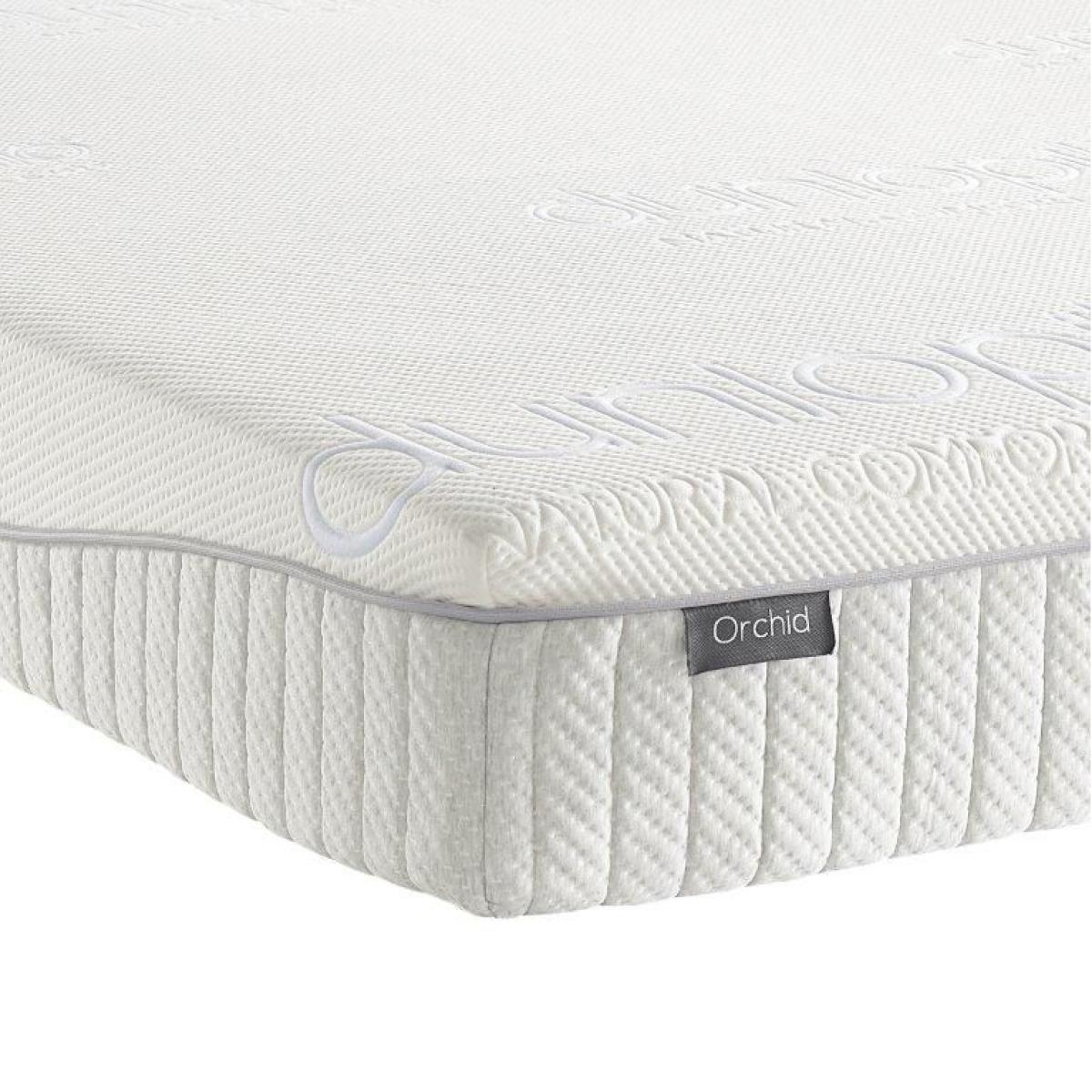 The Orchid Plus includes all the features of the standard Orchid model, including its seven comfort zones. The Plus model offers a little something extra with the addition of a mattress cover developed with innovative cooling technology. The highly conductive properties of this clever fabric work to cool you by drawing heat away from your body, promising a consistent and comfortable temperature all night long. Premium mattress cover with Innovative Cooling Technology. Our deepest core made from breathable, responsive latex. Open-cell, ventilating design 7 comfort zones Pressure relieving Reduced effort needed for movement throughout the night, resulting in improved REM sleep Naturally anti-allergenic, anti-bacterial and anti-microbial Completely noise free. Maintenance free: no need to turn, flip or rotate Firm support 8 Year Guarantee Mattress Dimensions: Small Double - W: 120cm L: 190cm D: 24cm Double - W: 135cm L: 190cm D: 24cm The Drop Middle Firm Edge Pocket Base is designed to give you a deeper, softer comfort level while being constructed to allow the addition of solid timber drawer storage options. Constructed from sustainable timber, the precisely upholstered Dunlopillo firm edge pocket base supports a responsive pocket spring layer that works in perfect harmony with your Dunlopillo mattress. Seated inside a wooden frame the pocket springs soften the comfort of the mattress while providing a firm edge that prevents 'roll off' from the side of the bed. One piece mattresses are supplied with drop middle firm edge pocket divans to prevent any feeling of a firm ridge in the middle of the bed, while pairs of mattresses, zip and link mattresses for example, are supplied with firm edge all round divan bases, allowing them to be separated to twin beds when required. Dunlopillo pocket bases have been designed to give you a deeper, softer comfort level while being constructed to allow the addition of solid timber drawer storage options. Base Dimensions: Small Double - W: 120cm L: 190cm D: 41.5cm Double - W: 135cm L: 190cm D: 41.5cm All screens vary in colour reproduction and whilst every effort has been made to display the colour as accurately as possible it is for guidance only. Please note, the headboard pictured is not included but is available to purchase separately. You can browse our range of Dunlopillo headboards here.