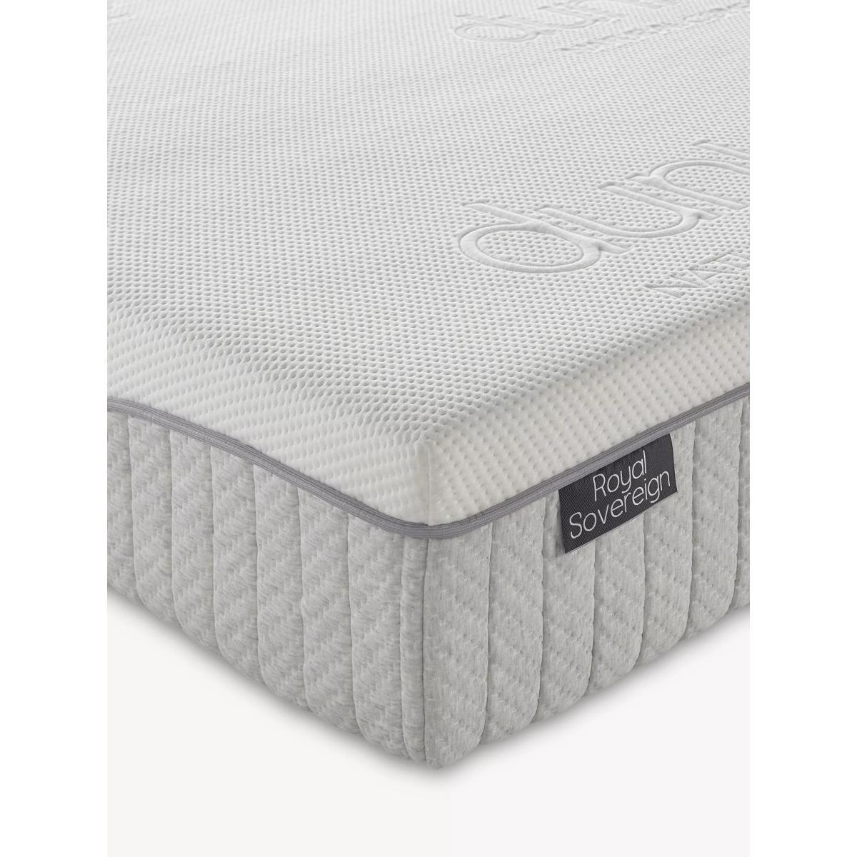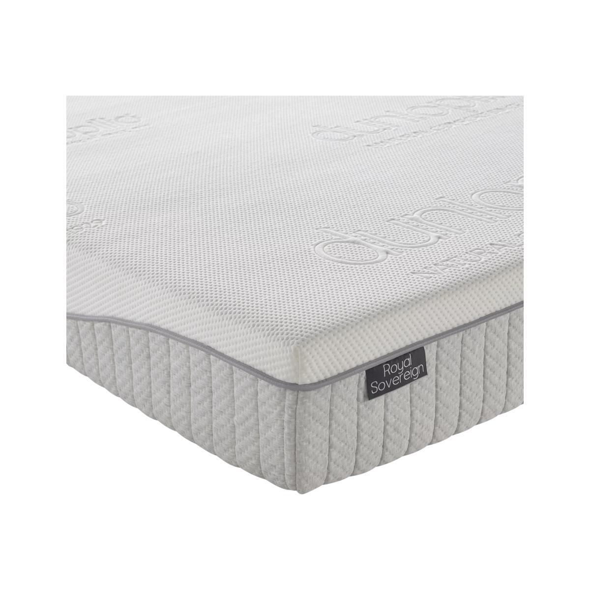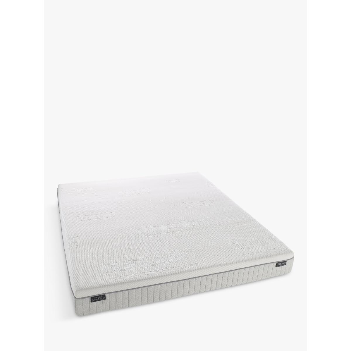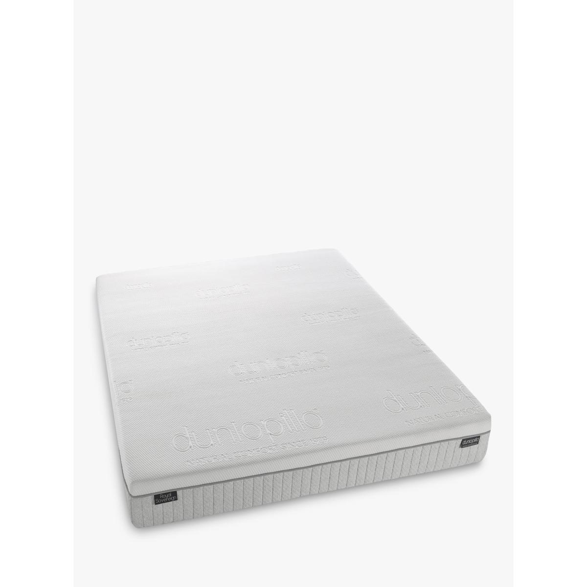 Made in the UK Expertly engineered to incorporate seven comfort zones and a 100% latex core, Dunlopillo’s renowned Royal Sovereign mattress delivers a seamless sleep experience. Its surface cleverly maps the contours of the body, whilst the comfort core provides even deeper levels of luxurious support. Dunlopillo’s natural latex is a wonderful material derived from the sap of rubber trees grown in managed sustainable plantations around the world. One of the most eco-friendly mattress fillings, latex rubber trees purify over 90 million tons of carbon dioxide a year. With inherent anti-allergenic, anti-bacterial and anti-microbial properties, the unique Dunlop manufacturing process ensures that all latex’s characteristics are embodied in each innovative Dunlopillo mattress. Dunlopillo latex is resilient, responsive and completely noise free, helping to provide a revitalising, undisturbed and natural sleep. Softer comfort zones cushion your shoulders, hips and heels, whilst firmer support zones provide perfect balance to allow your spine to be correctly aligned in which ever position you sleep. Dunlopillo latex instantly responds and adapts to individual profiles and movements and encourages deeper and more restful sleep. Through its unrivalled elasticity, it provides instant pressure relief and encourages a healthy blood supply to your muscles, so you awake feeling refreshed and revitalised. Latex’s open cell structure is made up of millions of interconnecting microscopic air bubbles, which not only ensure a very supportive mattress, but also promote constant air circulation. Natural movement during the night helps ventilate the mattress and keeps the bed at a constant and comfortable temperature. Actipro™ technology is used in the mattress fabric to provide natural protection against allergens, dust mites and odours which help to maintain a clean, fresh and healthy sleep environment. Dunlopillo latex mattresses are designed to deliver long lasting performance by utilising a natural resilience to hold their shape and remain durable for years to come. Easily maintained and designed to make life simpler, Dunlopillo mattresses do not require turning. This mattress needs to be kept well ventilated; for this reason we recommend you pair it with a ventilated divan base or bed. Extend the life of your new mattress with a durable and breathable. Please note: not all our ranges are on display in our shops.
