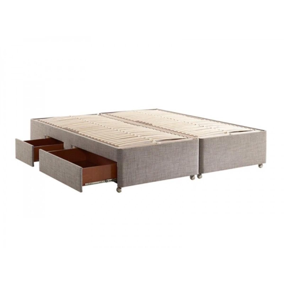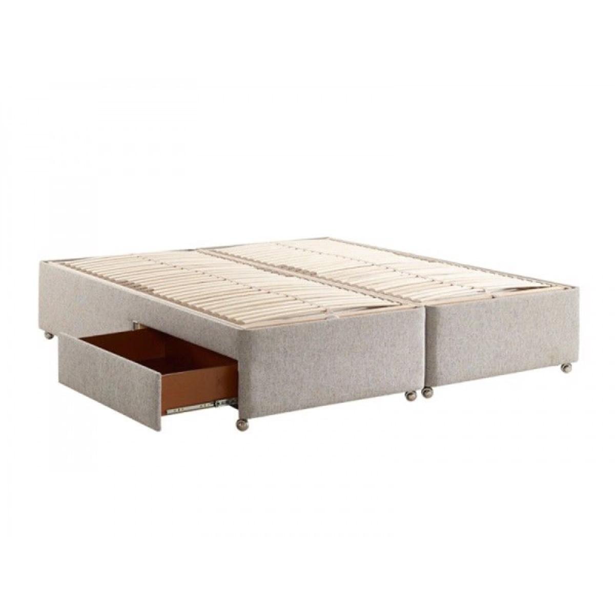 With a generous layer of 100% pure Dunlopillo latex that is resilient, responsive and completely noise free, the Royal Sovereign is the timeless classic of the Signature range. This mattress has been expertly engineered to contour individual profiles and movements, encouraging ultimate pressure relief and comfort. Deep core made of breathable, responsive latex 7 comfort zones Pressure relieving Reduced effort needed for movement throughout the night, resulting in improved REM sleep Naturally anti-allergenic, anti-bacterial and anti-microbial Completely noise free Actipro Technology probiotic treatment: the natural solution to allergens, bacteria and odours Maintenance free: no need to turn, flip or rotate Medium support. 8 Year Guarantee Mattress Dimensions: Single - W: 90cm L: 190cm D: 21cm Long Single - W: 90cm L: 200cm D: 21cm Small Double - W: 120cm L: 190cm D: 21cm Double - W: 135cm L: 190cm D: 21cm King - W: 150cm L: 200cm D: 21cm Super King - W: 180cm L: 200cm D: 21cm Driven by our blueprint for comfort, the slat system has been designed to flex to your body weight and movement offering a firmer level of support and comfort compared to the sprung edge base. The Dunlopillo slatted base incorporates our supremely comfortable sprung birchwood slat system. The slat system has been designed to flex to your body weight and movement offering a firmer level of support and comfort compared to the sprung edge base. This system also dramatically increases airflow beneath the mattress, which in turn enhances the natural breathable characteristics of Dunlopillo latex. The firmness of the system can also be controlled through the use of cleverly designed comfort adjusters positioned in the lumbar region of the system. Moving the adjusters to the outside edge of the system will create a firmer feel, whilst positioning them centrally will create a softer feel. The slatted base has also been designed to allow for the addition of our solid timber drawer storage options. All drawers are assembled from solid hardwood components, using dovetail joints for strength and feature smooth operation runners. Base Dimensions: Single - W: 90cm L: 190cm D: 41.5cm Long Single - W: 90cm L: 200cm D: 41.5cm Small Double - W: 120cm L: 190cm D: 41.5cm Double - W: 135cm L: 190cm D: 41.5cm King - W: 150cm L: 200cm D: 41.5cm Super King - W: 180cm L: 200cm D: 41.5cm All screens vary in colour reproduction and whilst every effort has been made to display the colour as accurately as possible it is for guidance only. Please note, the headboard pictured is not included but is available to purchase separately. You can browse our range of Dunlopillo headboards here.