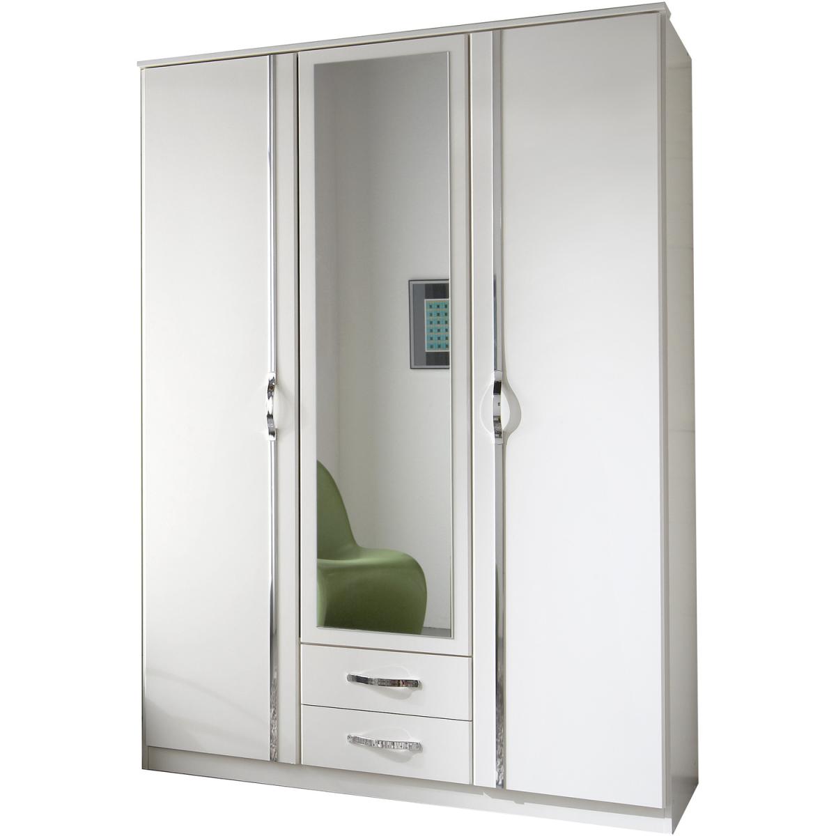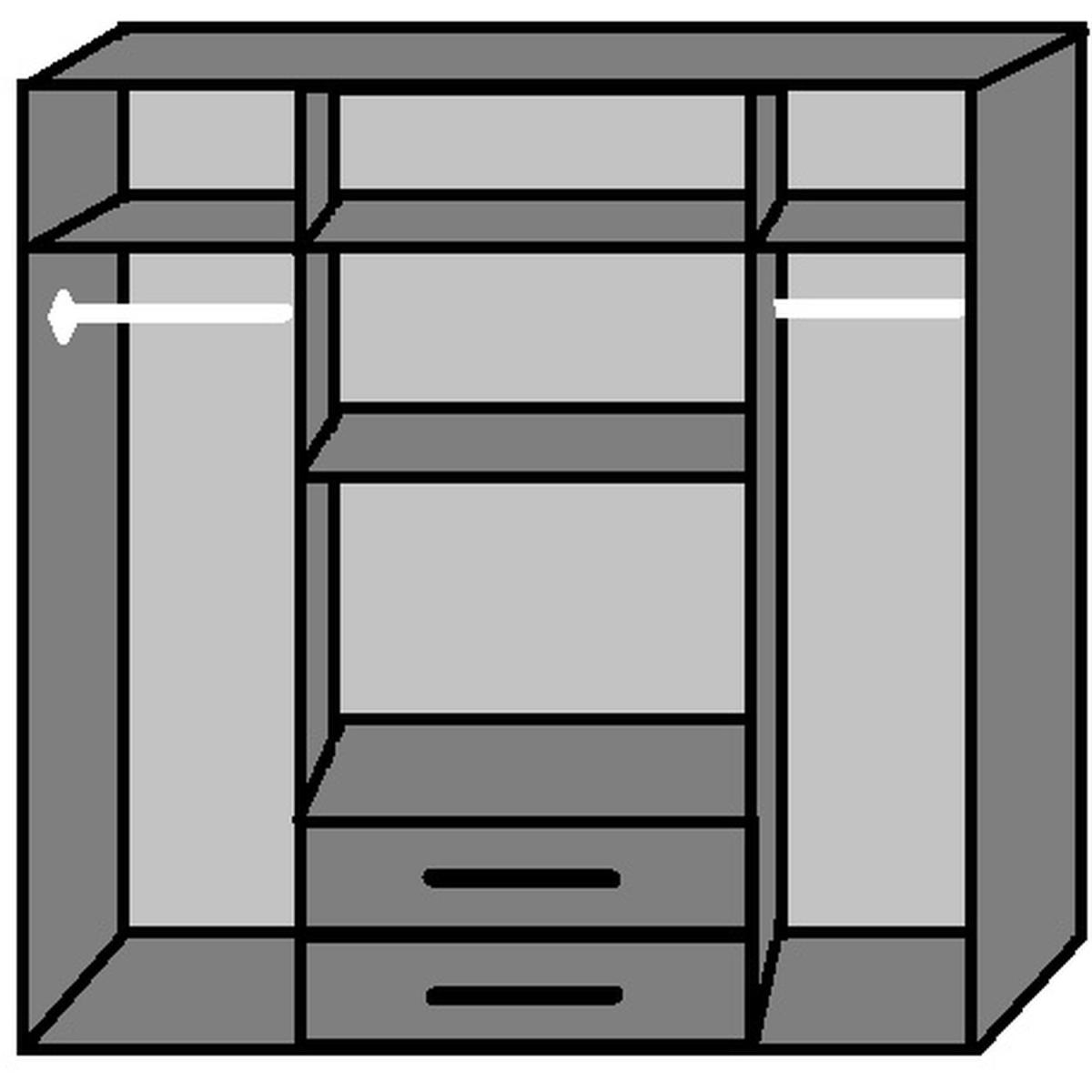 The DUO 4 Door 2 Drawer Wardrobe offers a combination of hanging, shelving and drawer space. The wardrobe has trendy long handles along with the 2 centre doors being mirrored which give the wardrobe a modern look. This robe gives you 3 different areas of storage. The centre section is divided with 2 drawers at the bottom and 2 shelves behind the 2 mirrored doors, the 2 outer sections are fitted with a single shelf and hanging rail in each. All Tjs products are designed and built in Germany and constructed to a high standard. All Tjs ranges are subject to full quality checks before leaving the factory to ensure a consistent standard of product.
