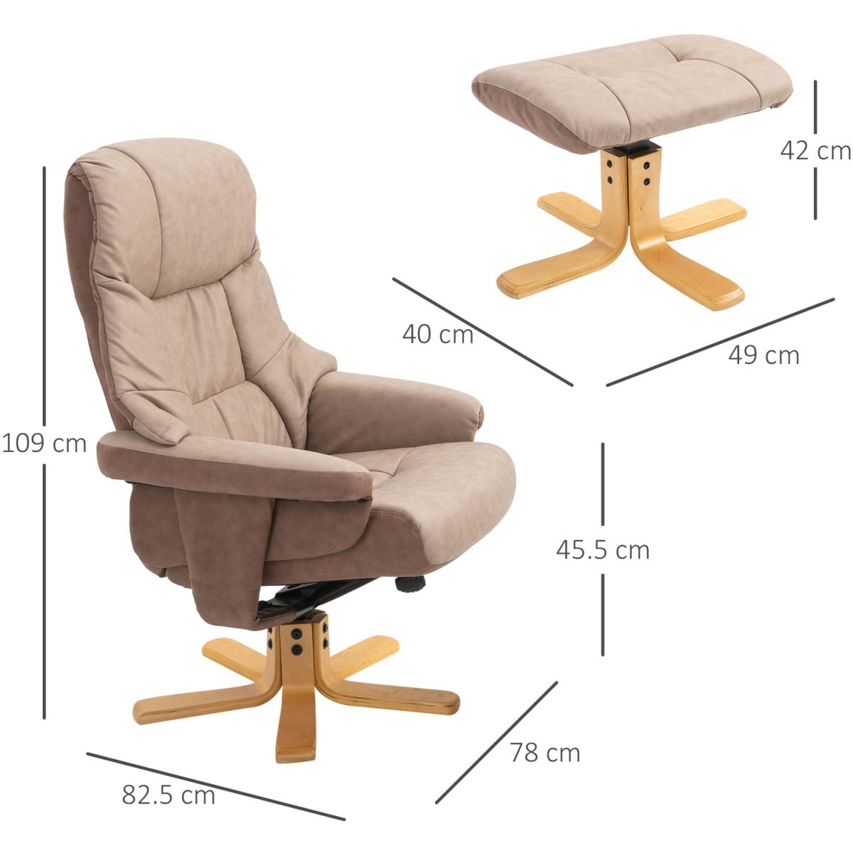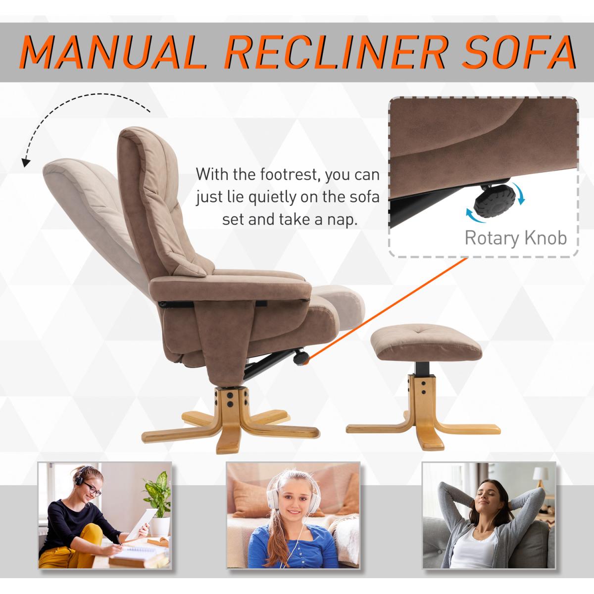 Sink into double the comfort with recliner and footrest duo from HOMCOM. Shaped into a large size, the chair is covered in thick foam padding for comfort, with breathable microfiber upholstery, in a vintage looked finish for a cool and timeless look. It can recline back to a maximum 135 diameter angle via the under-seat handle, making it perfect paired with the footstool. It's finished with low arms for plenty of sitting space for optimum support when seated and a wooden base to ensure solid stability. The perfect spot for your afternoon time-outs.