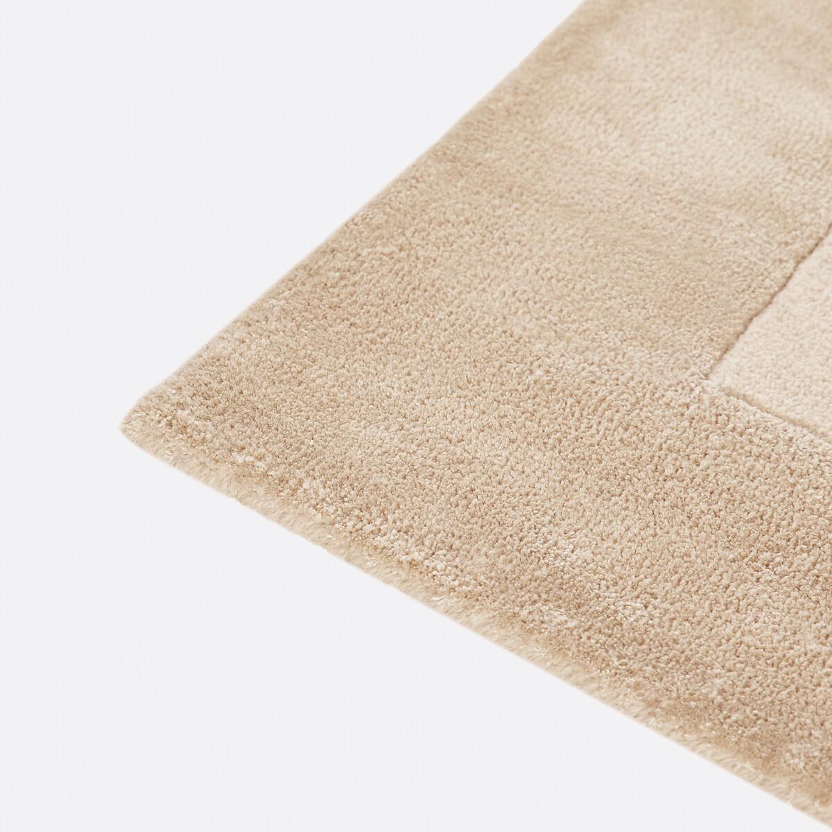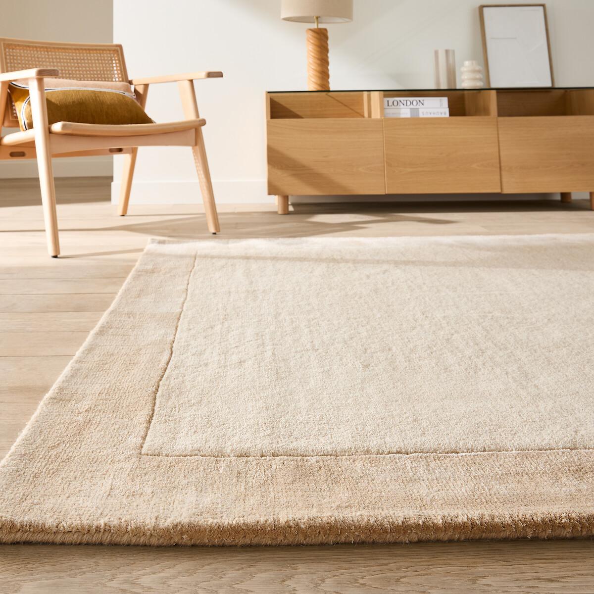 In a palette of luminous beige, the Duoma rug plays on the contrasts between wool and viscose. In the living room or under the table, it will enhance your living moments. A hand-crafted creation by La Redoute Intérieurs. Product Details • 26% wool, 74% viscose • 3800 g/m2 • Thickness: 2.5cm/1" • Weaving type: Handmade • Underfloor heating compatible: No • Interior Use:Yes • For outdoor use: No. Quality • Wool is a warm and comfortable fibre. A wool rug is also an excellent thermal and sound insulator. • Viscose is a textile fibre obtained from wood pulp. Also called artificial silk, it is smooth, shiny, very soft and has subtle variations in tone depending on the brightness and the direction of the pile.. • Hand-braided, each piece is unique and may have small irregularities which make it authentic.. Colours and dimensions may vary slightly. Care information • Once unrolled, you must wait a few days for the carpet to return to its initial shape. • To keep the edges flat, roll your mat in the opposite direction. Leave it like this for an hour then put it back flat and place a heavy object on it for 2 days. • New, the carpet may give off an odour which dissipates over time. Ventilate your room regularly to reduce it. • To preserve its appearance, rotate your rug regularly in one direction or the other to minimise localised wear in the same places (due to successive passages), and loss of colour due to regular light exposure. Care instructions • Some materials are very fibrous (such as wool) Wool rugs pill naturally during the first few months: this is a normal for this type of product and is not a defect. Remove the excess fibres by hand where possible, do not use a vacuum cleaner with a rotating brush as this can pull and tear the fibres. The pilling will improve over time. • For maintenance, we advise you to vacuum it very little the first month and then to vacuum it without rubbing too much always without using the brush. • Compatible with robot vacuum cleaners:No • Remove stains immediately with a clean, damp cloth. • Dry clean recommended. Dimensions • Width 120 x Length 170cm • Width 160 x Length 230cm • Width 200 x Length 290cm • OEKO-TEX® Standard 100. Standard 100 certification by OEKO-TEX® tests textile products for harmful substances via an independent, international label.