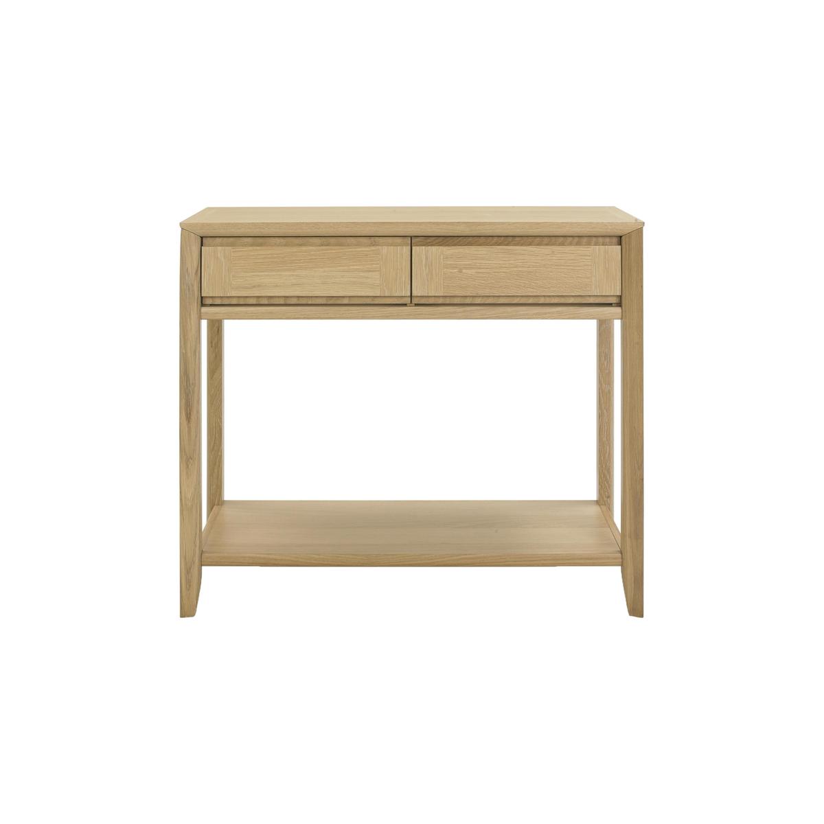 Stylish and surprising functional, the great- value Duplex console table combines useful storage and display space with elegant well- crafted lines. Thanks to its deliberately narrow profile, this is the perfect piece for the smaller living room and hallway. The two drawers with Blum soft- close runners and neat recessed handles are surprisingly roomy. And the top and lower shelf are the perfect place to display books and favourite pieces of artwork, or to hold a table lamp. Made from solid white oak and oak veneers, this console table showcases beautiful marquetry patterning on its top, shelf and drawer fronts. Set on elegantly tapered legs, it has three- way mitred corner joints, a lovely design feature which speaks to the high- end construction. The Duplex console table is part of the relaxed and stylish Duplex range of living and dining room furniture, and pairs beautifully with the Duplex coffee table. WARNING! Furniture can tip over unexpectedly and cause injury. This item must be fixed to a wall using the anti- tip kit provided. Be sure to use the correct wall fixings suitable for the walls in your home. Furniture Village is not able to fix anti- tip devices for you. Seek professional advice if you are unsure.