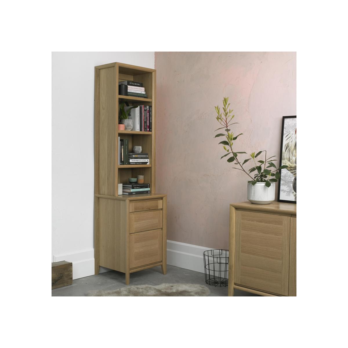 Compact, elegant and versatile, the incredible-value Duplex collection makes it easy to furnish every room in relaxed and elegant style. Offering a wide range of dining room, living room and home office furniture, this stunning collection is thoughtfully designed and beautifully made from solid white oak and white oak veneers. Pieces feature well-crafted and authentic details like marquetry-patterned tops, three-way mitre corner joints, recessed handles, and soft-closing drawers and doors. Choose from three sizes of extending dining table and several styles of dining chair, plus sideboards, occasional tables, entertainment units, and even desks and a filing cabinet. The cleverly designed and very versatile Duplex narrow top unit is designed to create a multi-functional shelving and storage unit when placed on top of the Duplex filing cabinet – perfect for the more compact home office. With three built-in shelves – a fourth is automatically created by the top of the filing cabinet – it offers plenty of space for books, folders and home office essentials. It’s beautifully made from solid white oak and oak veneer and features intricate three-way mitred corner joints and marquetry patterning which adds to the overall well-crafted appearance. Surprisingly affordable, the Duplex narrow top unit is part of the Duplex collection of compact furniture for living room, dining room and home office. Other office furniture includes two styles of desk, including a corner desk, and a tall, narrow bookcase.