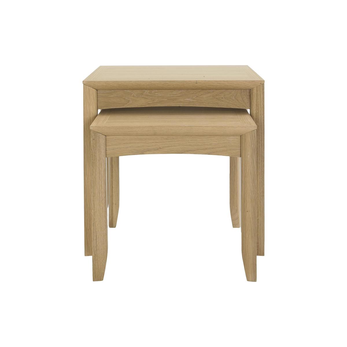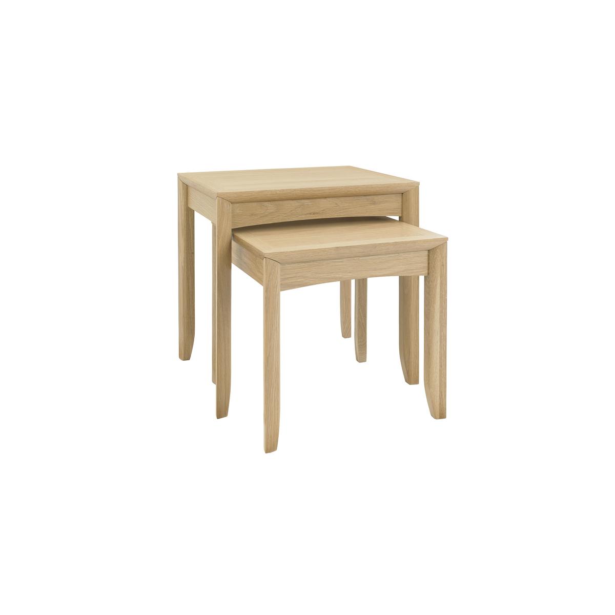 Compact, elegant and versatile, the incredible-value Duplex collection makes it easy to furnish every room in relaxed and elegant style. Offering a wide range of dining room, living room and home office furniture, this stunning collection is thoughtfully designed and beautifully made from solid white oak and white oak veneers. Pieces feature well-crafted and authentic details like marquetry-patterned tops, three-way mitre corner joints, recessed handles, and soft-closing drawers and doors. Choose from three sizes of extending dining table and several styles of dining chair, plus sideboards, occasional tables, entertainment units, and even desks and a filing cabinet. Beautifully crafted, charming in style and so very useful, the Duplex nest of tables is a wonderful addition to any home – especially a compact one. This set of side tables includes two rectangular tables that nest together to give you the option of having two tables, perhaps when you have guests over, or just one when you need to liberate floor space. While a traditional furniture arrangement, this interpretation of the nest of tables has a relaxed and elegant look thanks to the solid white oak and oak veneer construction, gently tapered legs and three-way mitered corner joints. Table tops feature intricate marquetry patterning ensuring that you’ll want to put them both on show whenever the occasion arises. The Duplex nest of tables is part of the well-priced Duplex furniture collection which includes a wide variety of pieces for living room, dining room and home office.