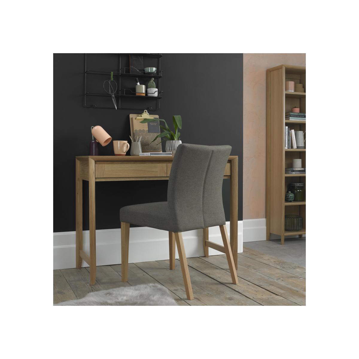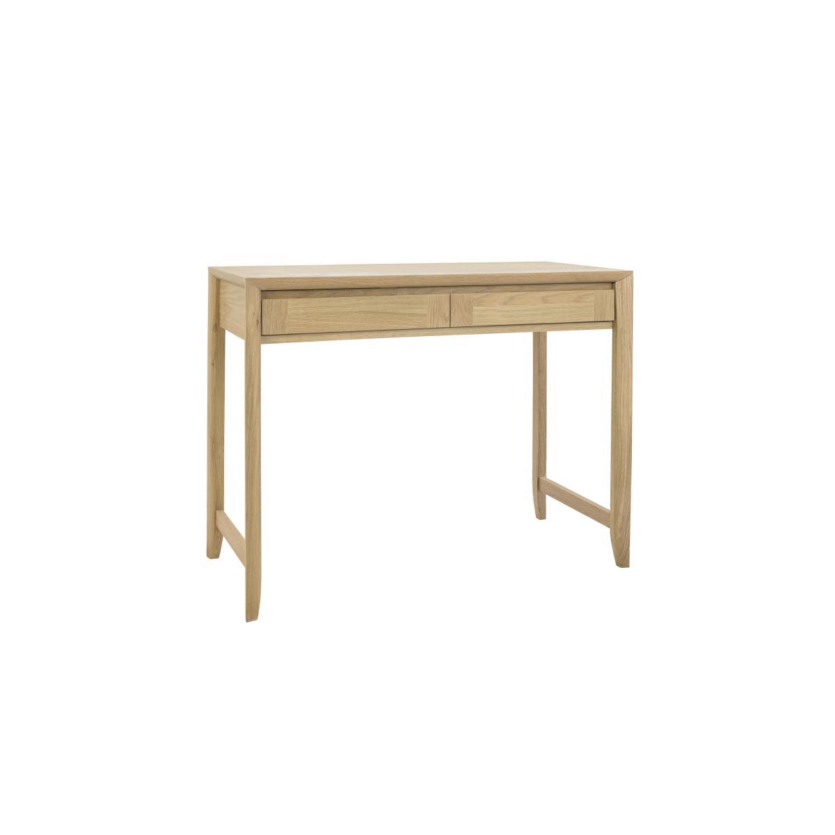 The slim and elegant Duplex standard desk makes it easy to turn any space into a neat work station, even if you dont have a dedicated home office. In relaxed style, this solid white oak and oak veneer desk fits beautifully in any room living room, dining room, bedroom and kitchen diner. And thanks to the two roomy drawers, its easy to tidy away the working day when the time comes. Although very affordably priced, this lovely piece features some gorgeously crafted details, like the marquetry patterned top and drawer fronts, the Blum soft- close drawers with recessed handles, the three- way mitred corner joints, and the slender tapered legs. The Duplex standard desk is part of the Duplex collection of beautiful living room, dining room and home office furniture, all of which are characterised by ergonomic design, simple elegant lines and well- crafted construction. WARNING! Furniture can tip over unexpectedly and cause injury. This item shall be fixed to a wall using the anti- tip kit provided with the furniture. Be sure to use the correct wall fixings suitable for the walls in your home.