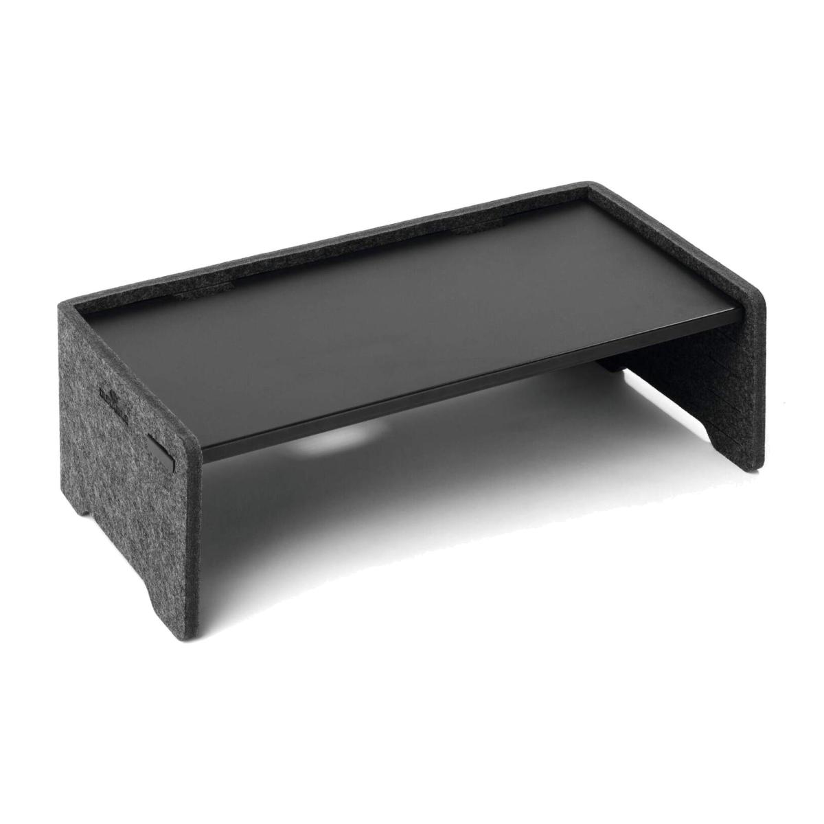 Evelvate your workspace with our premium recycled felt monitor stand for a more comfortable organised work environment. The unique felt material adds a touch of warmth and cosiness to any environment seamlessly blending into your workspace decor The 3-step height adjustable design provides better posture and comfort while working with monitors and laptops Tame your cable chaos and effortlessly declutter your space with the integrated cable management routes Add an optional drawer extension to provide additional storage space for a clean organised workspace. Compatible with Durable felt lined drawer product 508201 Max load capacity 10 kg. Dimensions 26 x 50 x 16 cm L x W x HMade in Germany and built to last