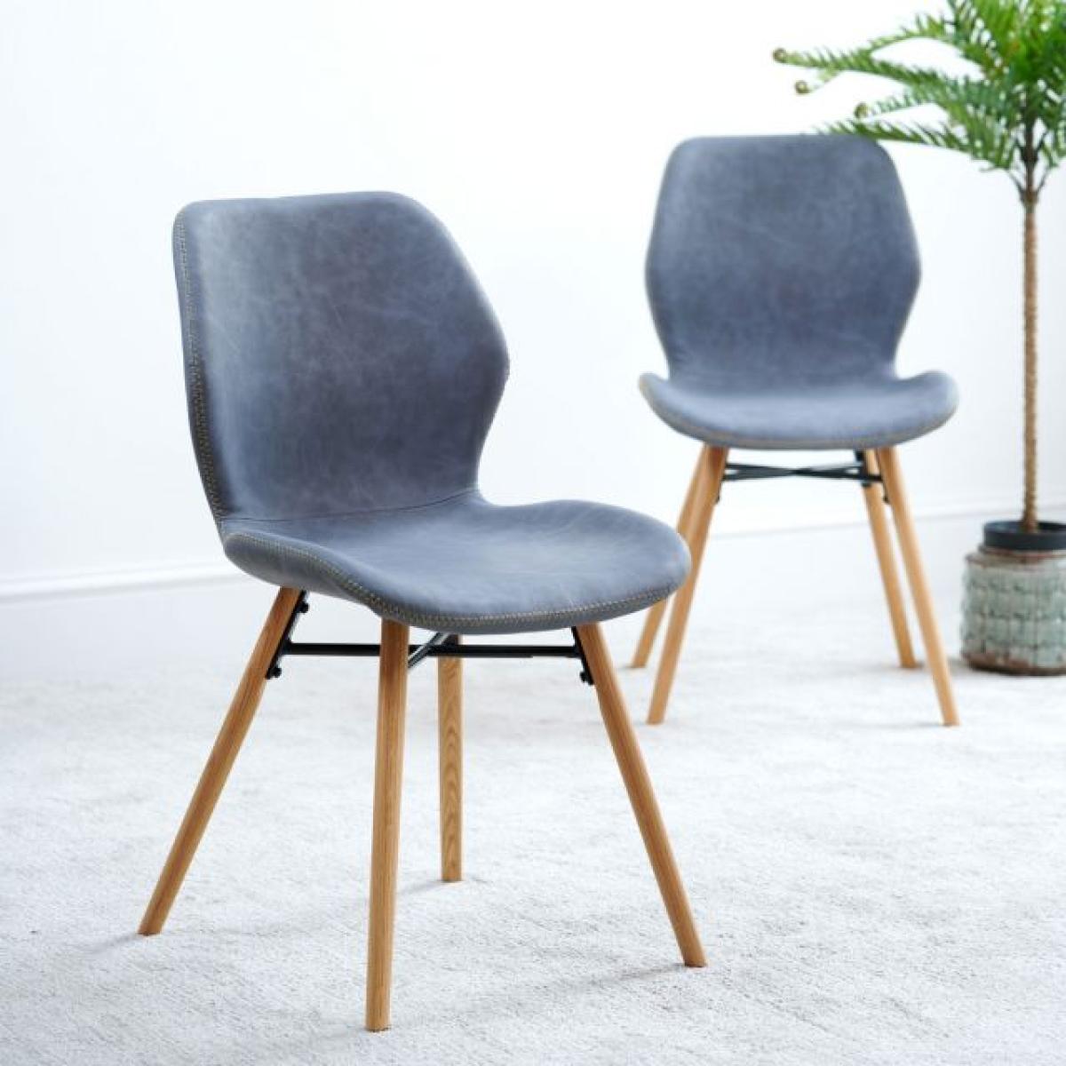 Pull up one of our Durada light grey retro dining chairs. Featuring a light slate grey faux leather seat that curves around slightly providing support for your back, complete with contrasting zig zag stitching around the edge of the base and seat back. Also available in Tan, Light Brown and Dark Grey. Sold as a set of 2 chairsW42cm x D41cm x H87cm Seat Height: 43cm. Simple Self-Assembly