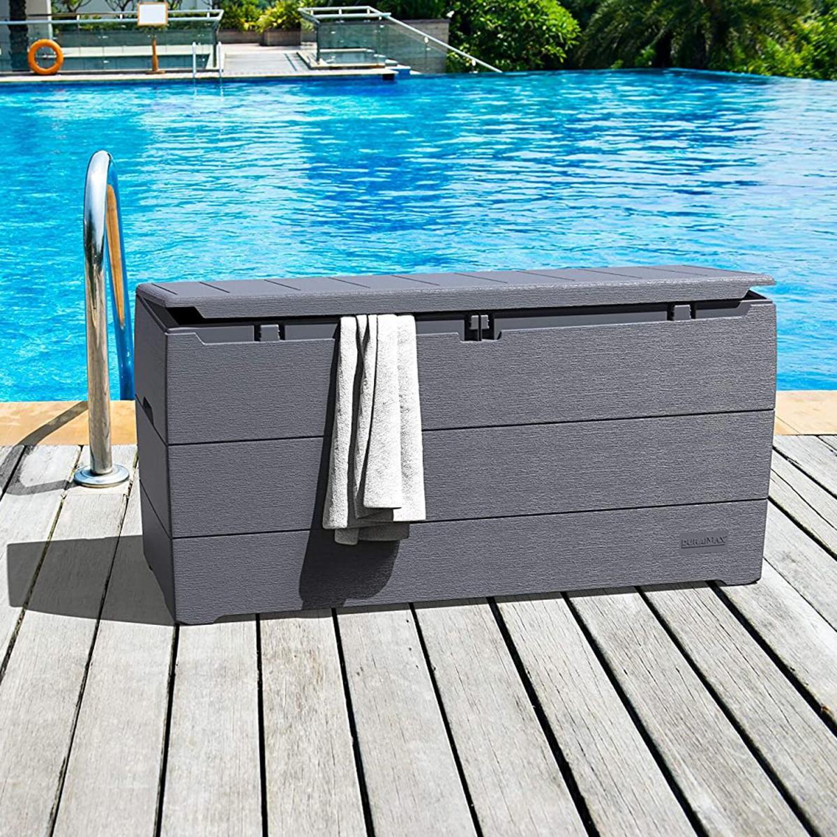 Duramax offers you a solid structure that is easy to install without tools and is maintenance-free. Keep all your items clean, secure and safe. This is your best choice in a deck box for storing garden tools, cushions, pillow, gear, toys, pool suppliesstrong and durable - protection and durability are crucial. Our garden storage boxes feature an elegant wood look that is attractive yet strong.
