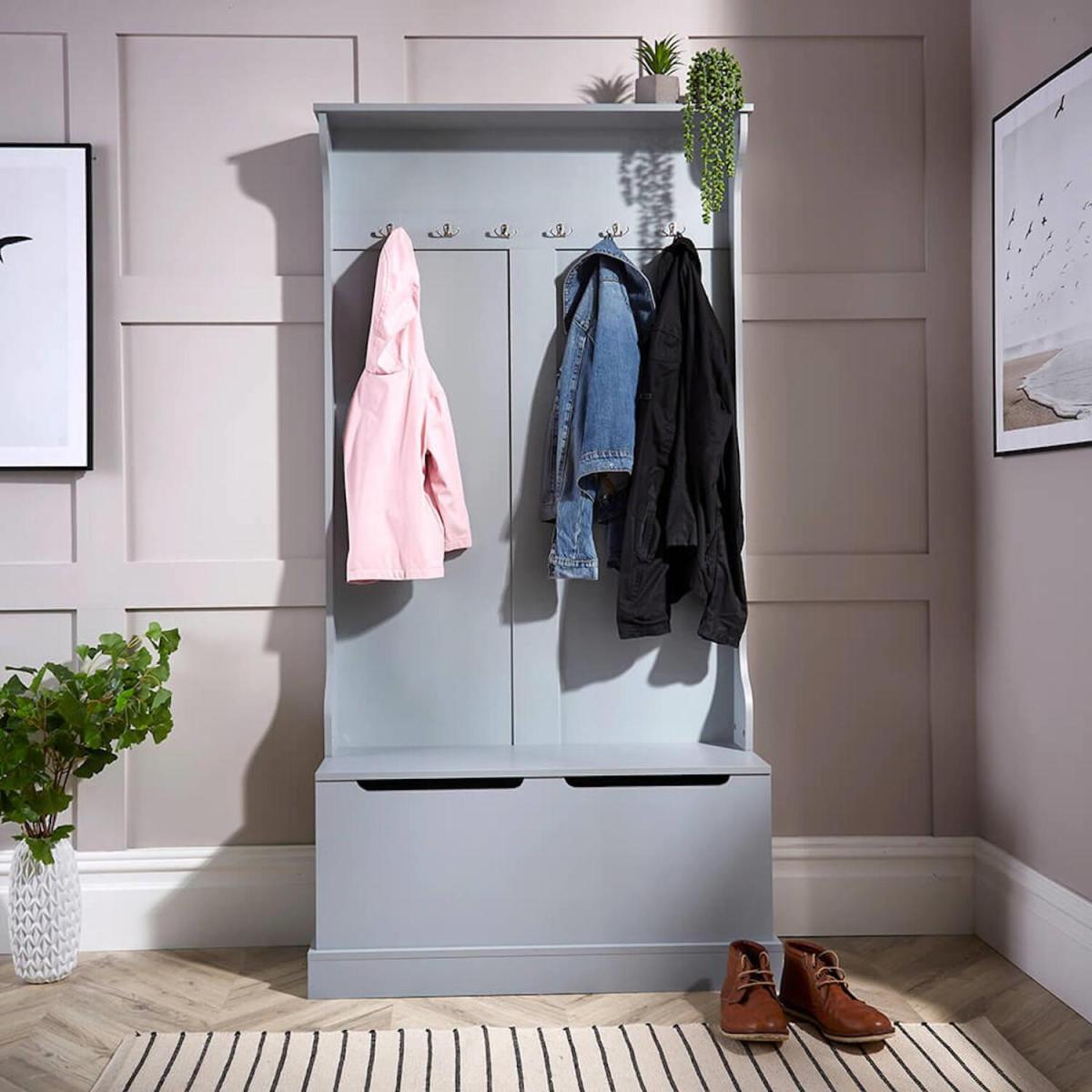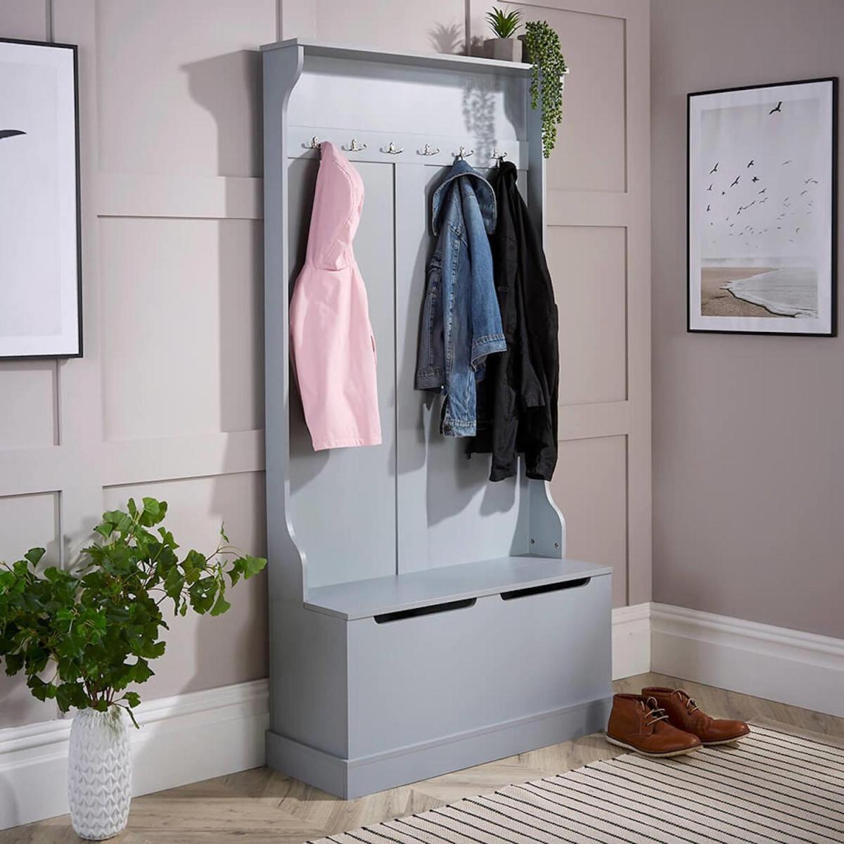 Durban Hallway Coat Hook Shoe Storage Bench - Grey