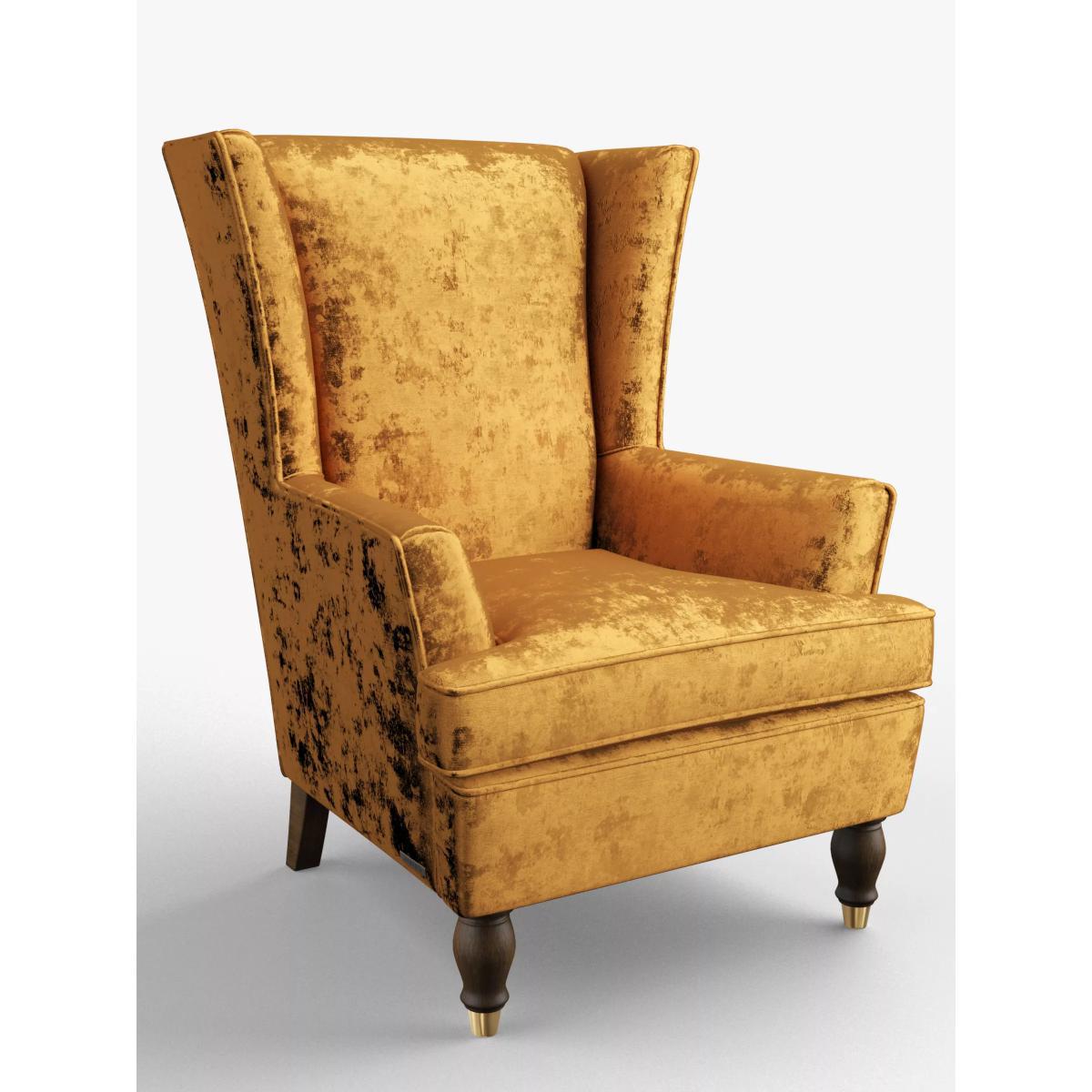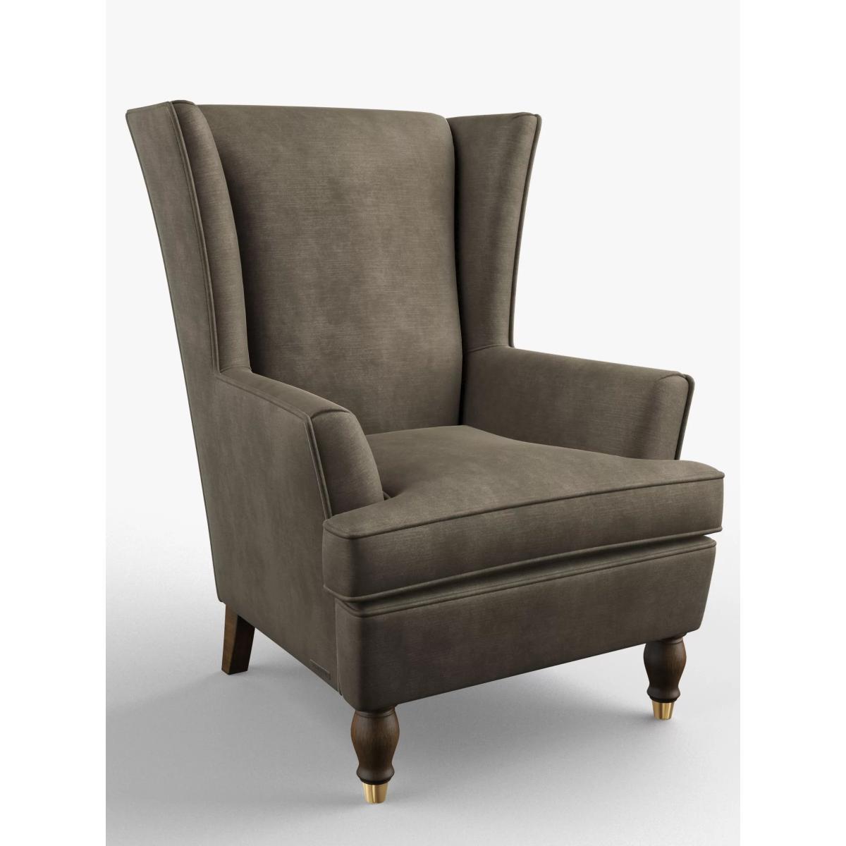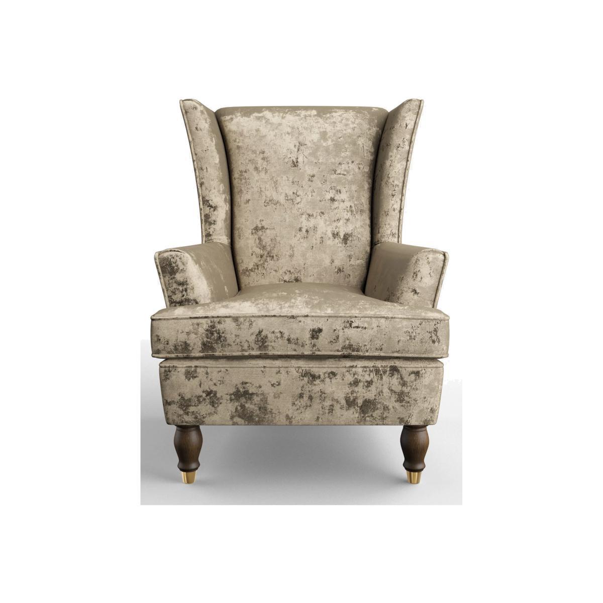 I love this wing back armchair for its classic elegance and timeless appeal. Its substantial presence makes it a great centrepiece in traditional or vintage-inspired interiors, but it can also add a touch of sophistication to more contemporary schemes when paired with clean-lined decor. The plush fabric invites comfort, making it ideal for cosy reading nooks or as an accent piece in living rooms. Practical styling tips include layering with textured cushions for added visual interest and using a contrasting throw to introduce colour or pattern. Its dark wooden legs provide stability and a touch of warm contrast, helping it blend seamlessly into both classic and transitional interiors.