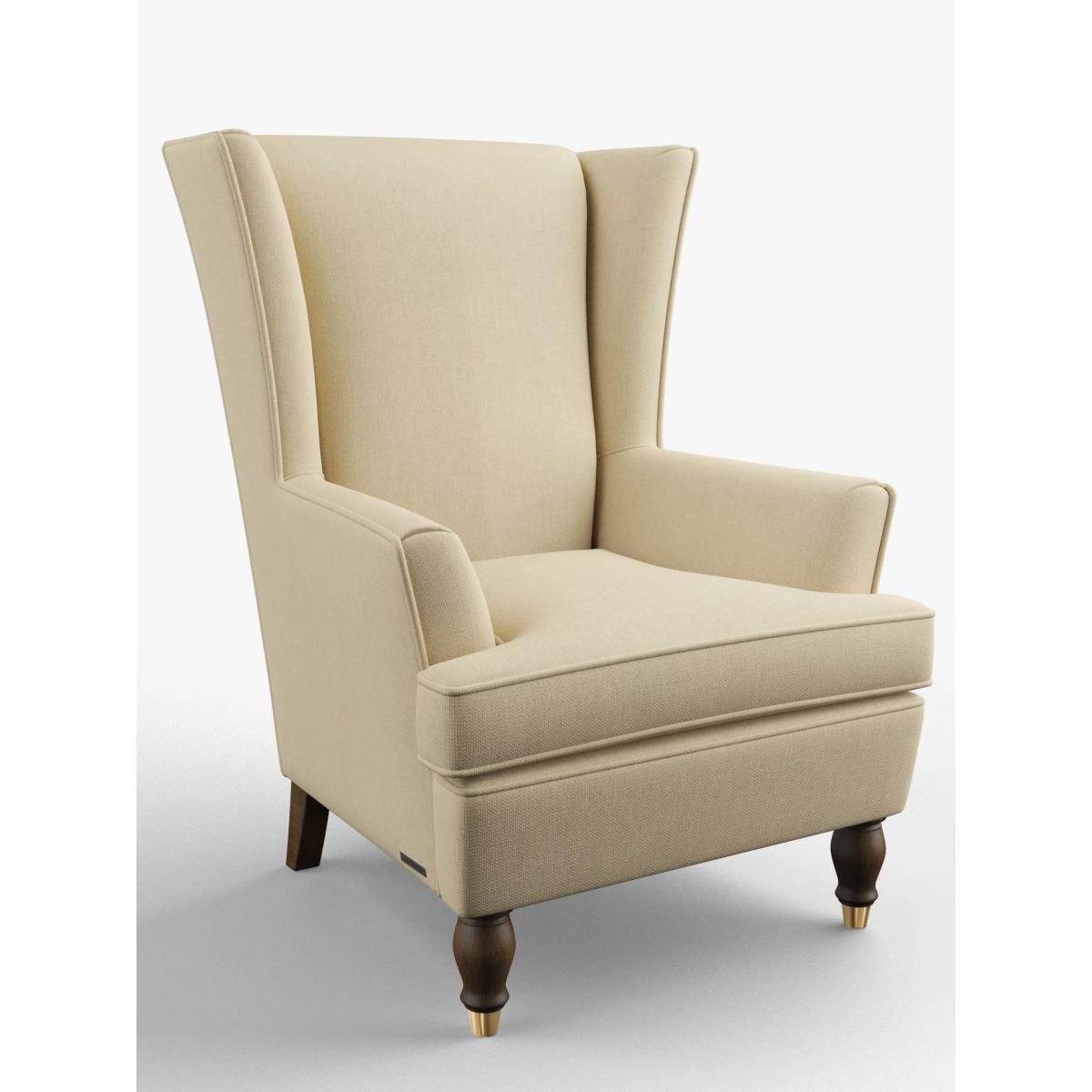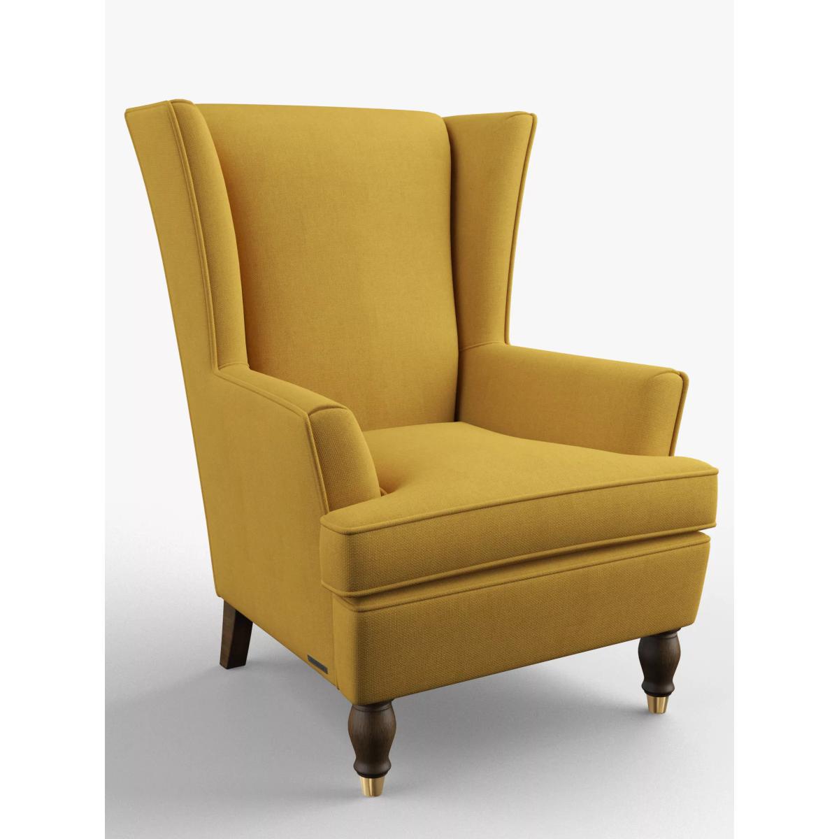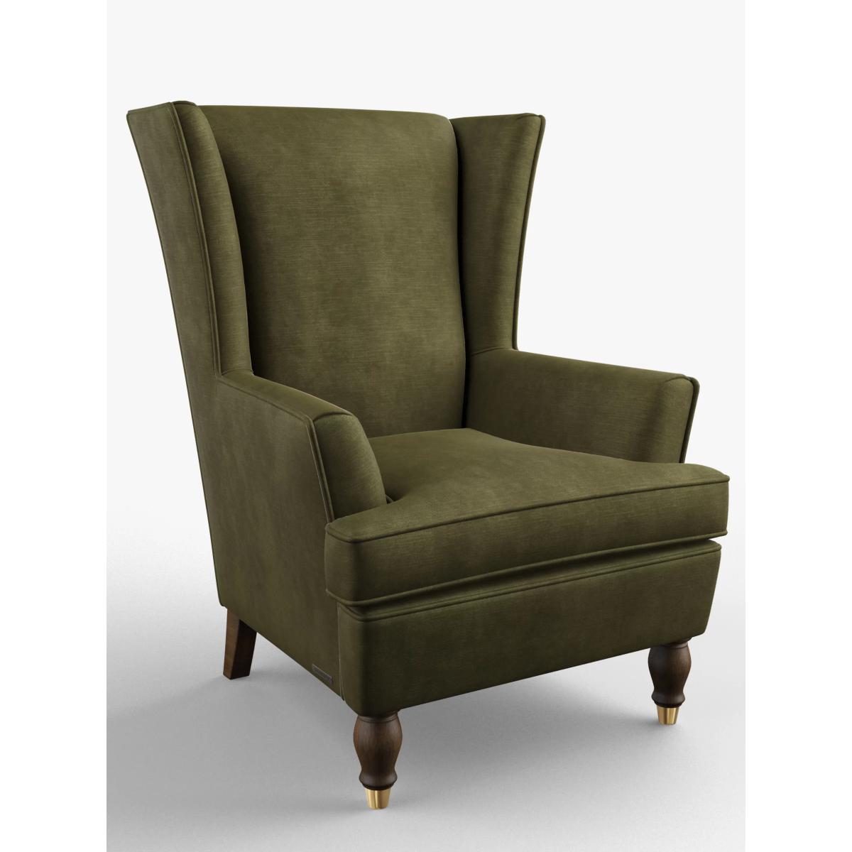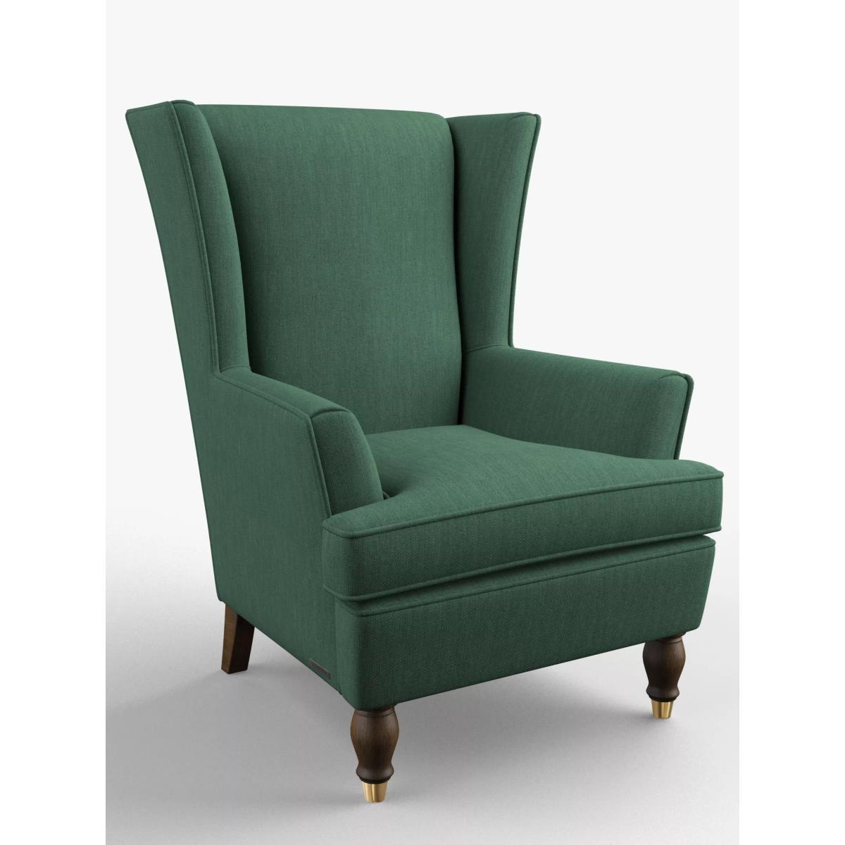 I love this wing back armchair for its classic elegance and timeless appeal. Its substantial presence makes it a great centrepiece in traditional or vintage-inspired interiors, but it can also add a touch of sophistication to more contemporary schemes when paired with clean-lined decor. The plush fabric invites comfort, making it ideal for cosy reading nooks or as an accent piece in living rooms. Practical styling tips include layering with textured cushions for added visual interest and using a contrasting throw to introduce colour or pattern. Its dark wooden legs provide stability and a touch of warm contrast, helping it blend seamlessly into both classic and transitional interiors.