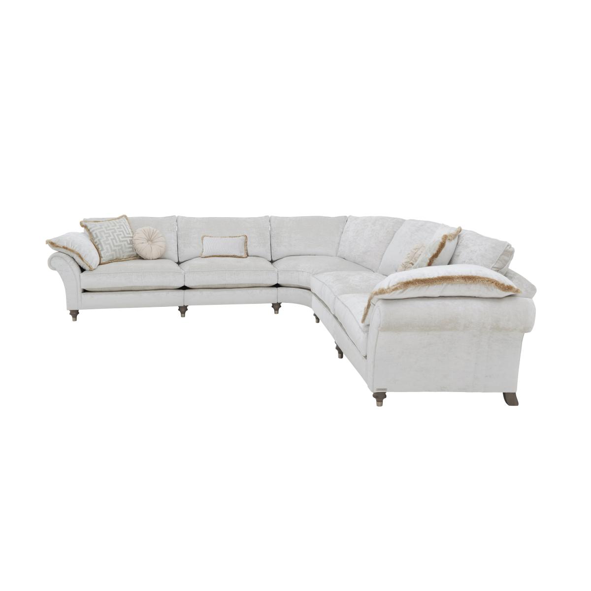 Bring home the kind of sumptuous handcrafted style and luxurious comfort that the whole family can enjoy. Why you’ll love it Simply stunning Duresta style. Superb comfort, sumptuous curves and a wealth of glam details. Extravagantly rolled arms have sumptuous feather-filled and ruched arm cushions. This sofa comes with 6 statement accent cushions in coordinating fabrics. 2 large reversible scatters with ruched edges, 2 pinwheel cushions and 2 lumbar cushions. Ruched-edge cushions are available with piping instead, if preferred. In a huge choice of exceptional upholstery fabrics handpicked for Furniture Village. Fabrics are sourced from specialist weaving mills in Belgium and Italy. Turned solid wood legs in a choice of finish. Optional brushed brass or brushed steel leg tips. Expertly handcrafted using traditional techniques and the highest-quality materials. Superb seat cushioning offers the support of foam with the softness of fibre. Reversible seat and back cushions stay beautiful for longer. Sprung seating platform has a firm front edge for longer frame and cushion life. 25-year frame guarantee. Made in England. This large corner sofa is part of our Duresta Princeton range. What you need to know Medium comfort level. Seat suspension: serpentine springs with fishmouth-spring front edge. Seat cushioning: Supawrap – foam core with a fibre wrap. Cushioning is reversible. Back suspension: serpentine springs. Back cushioning: fibre. Cushioning is reversible. Pinwheel accent cushions: fibre filling. Other accent cushions: feather filling. Plump, turn and rotate seat and back cushions to promote longer cushion life. Some fabrics can show wear on areas of more use or in direct sunlight. Clean regularly using a soft brush or vacuum with the curtain attachment. Deal with any spills promptly. Professional cleaning advised for oil- and grease-based stains. Please read our upholstery care guide for more advice.