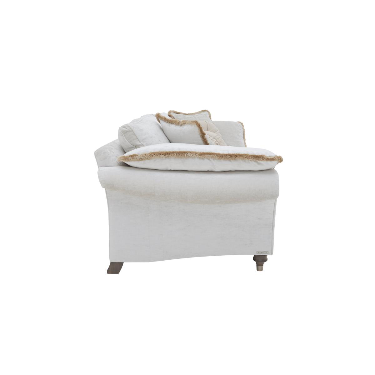 This roomy two-seater sofa is a Duresta original. Enjoy luxurious curves, sumptuous comfort and a set of four feather-filled accent cushions. Why you’ll love it Simply stunning Duresta style. Superb comfort, sumptuous curves and a wealth of glam details. Extravagantly rolled arms have sumptuous feather-filled and ruched arm cushions. This sofa comes with 4 statement accent cushions in coordinating fabrics. 2 large reversible scatters with ruched edges and 2 pinwheel cushions. Ruched-edge cushions are available with piping instead, if preferred. In a huge choice of exceptional upholstery fabrics handpicked for Furniture Village. Fabrics are sourced from specialist weaving mills in Belgium and Italy. Turned solid wood legs in a choice of finish. Optional brushed brass or brushed steel leg tips. Expertly handcrafted using traditional techniques and the highest-quality materials. Superb seat cushioning offers the support of foam with the softness of fibre. Reversible seat and back cushions stay beautiful for longer. Sprung seating platform has a firm front edge for longer frame and cushion life. 25-year frame guarantee. Made in England. This medium 2-seater sofa is part of our Duresta Princeton range. What you need to know Medium comfort level. Seat suspension: serpentine springs with fishmouth-spring front edge. Seat cushioning: Supawrap – foam core with a fibre wrap. Cushioning is reversible. Back suspension: serpentine springs. Back cushioning: fibre. Cushioning is reversible. Pinwheel accent cushions: fibre filling. Other accent cushions: feather filling. Plump, turn and rotate seat and back cushions to promote longer cushion life. Some fabrics can show wear on areas of more use or in direct sunlight. Clean regularly using a soft brush or vacuum with the curtain attachment. Deal with any spills promptly. Professional cleaning advised for oil- and grease-based stains. Please read our upholstery care guide for more advice.