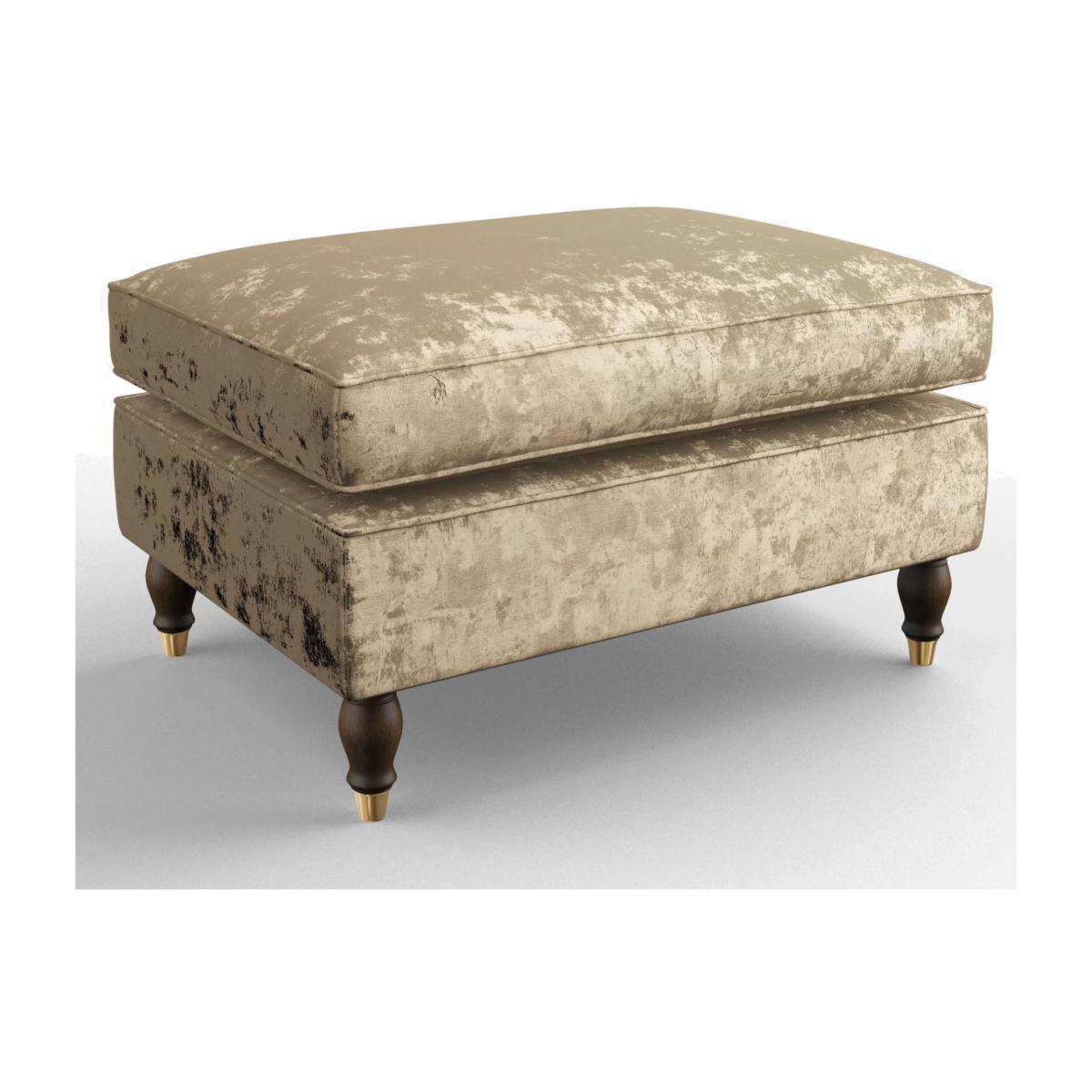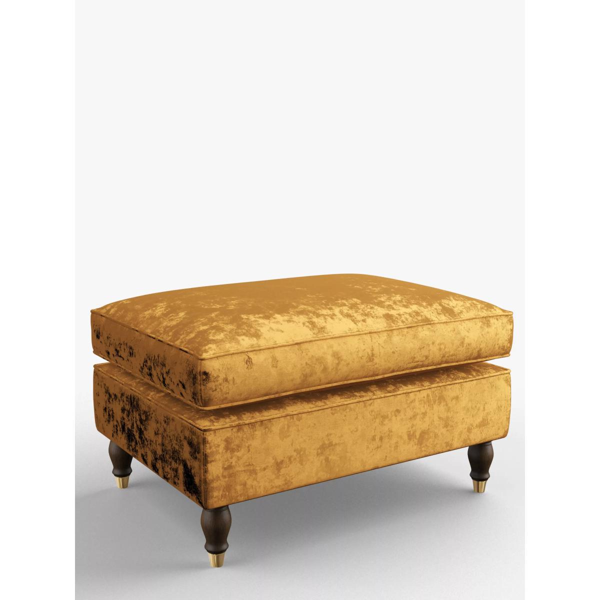 I love this footstool because of its classic design and plush velvet fabric, which brings a touch of luxe to both traditional and contemporary interiors. It works well in cosy corners, under a window seat, or as an independent piece in a living room or bedroom. Practical styling tips include pairing it with a matching or contrasting armchair for a layered look, or using it as a side table by adding a tray on top. Its neutral tone ensures it can blend seamlessly into various colour schemes, while the wooden legs add a sophisticated finishing touch. This piece is versatile enough to serve as extra seating or simply a comfortable spot to rest your feet.