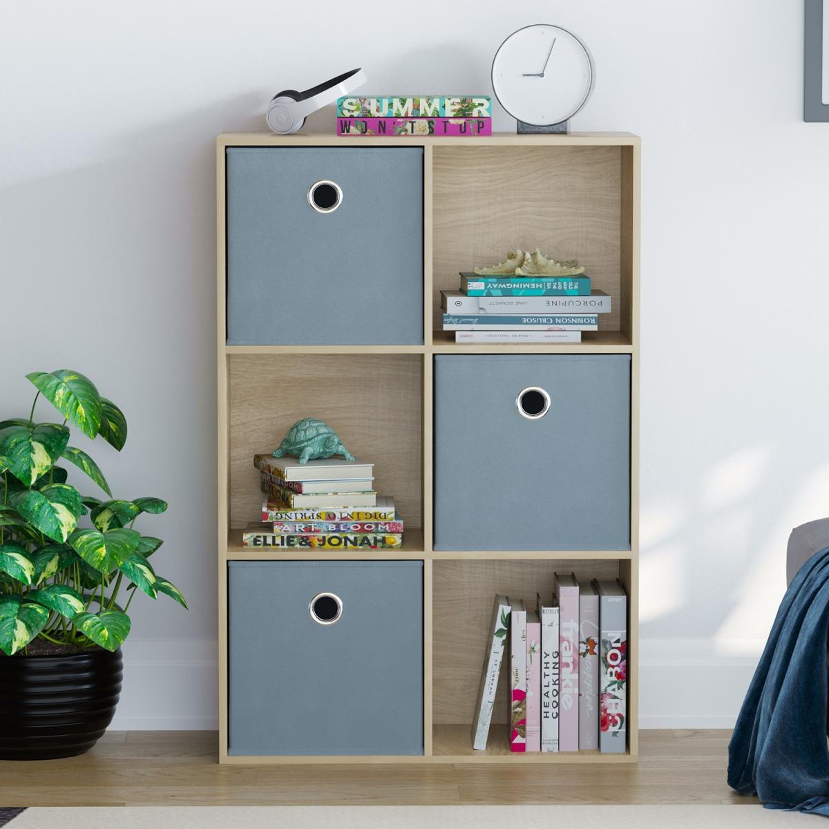Durham 6 Cube Storage Unit - Set of 3 Grey Baskets - Oak