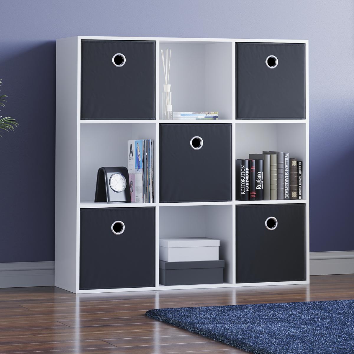 Durham 9 Cube Storage Unit - Set of 5 Black Baskets - White