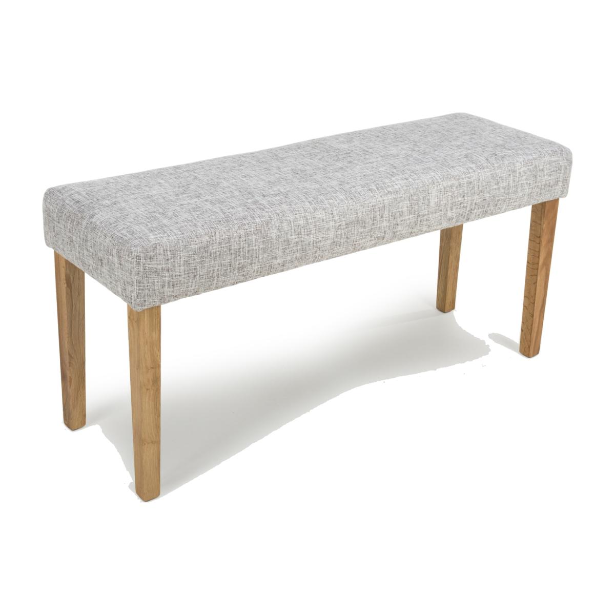 A versatile rectangular bench upholstered in a stunning grey weave linen effect fabric. The seat measures just over a meter long, providing ample space for two people to sit comfortably. Supplied with sturdy natural oak legs. Perfect for everyday use in living or dining areas. Assembly required. Sold in sets of 2.