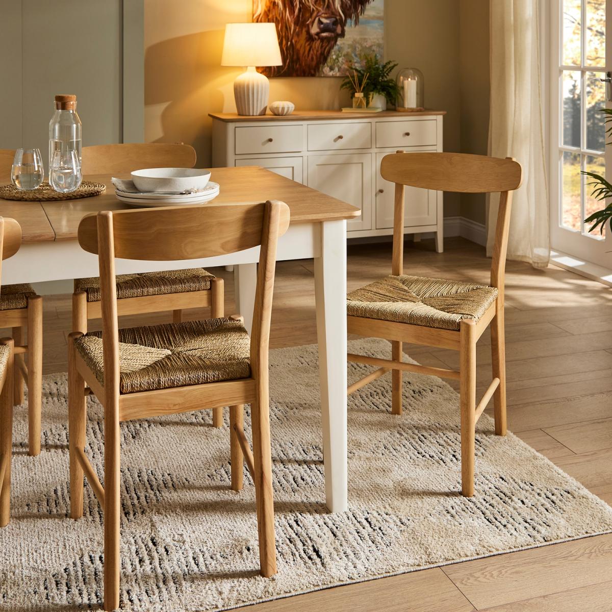 These Durley Woven dining chairs will add a Scandinavian-inspired feel to your dining experience. Made from strong and light rubberwood, with a woven seagrass seat, this bright, contemporary design will add a fresh modern feel to your dining area.