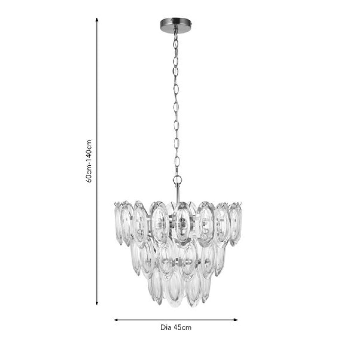 * Stylish, Eye-Catching Design * Adjustable Height - Tailored Ambience * Dimmable Compatible - Requires Dimmable Bulb & Switch * Available in Multiple Colourways Enhance your space with the Dusk 6 Light Adjustable Chandelier. Featuring shimmering clear lustre glass discs, this chandelier casts a radiant glow while adding a touch of glamour. Its adjustable height makes it perfect for any ceiling, and with dimmable compatibility (just add a dimmable bulb and switch), you can tailor the ambience to suit your mood.
