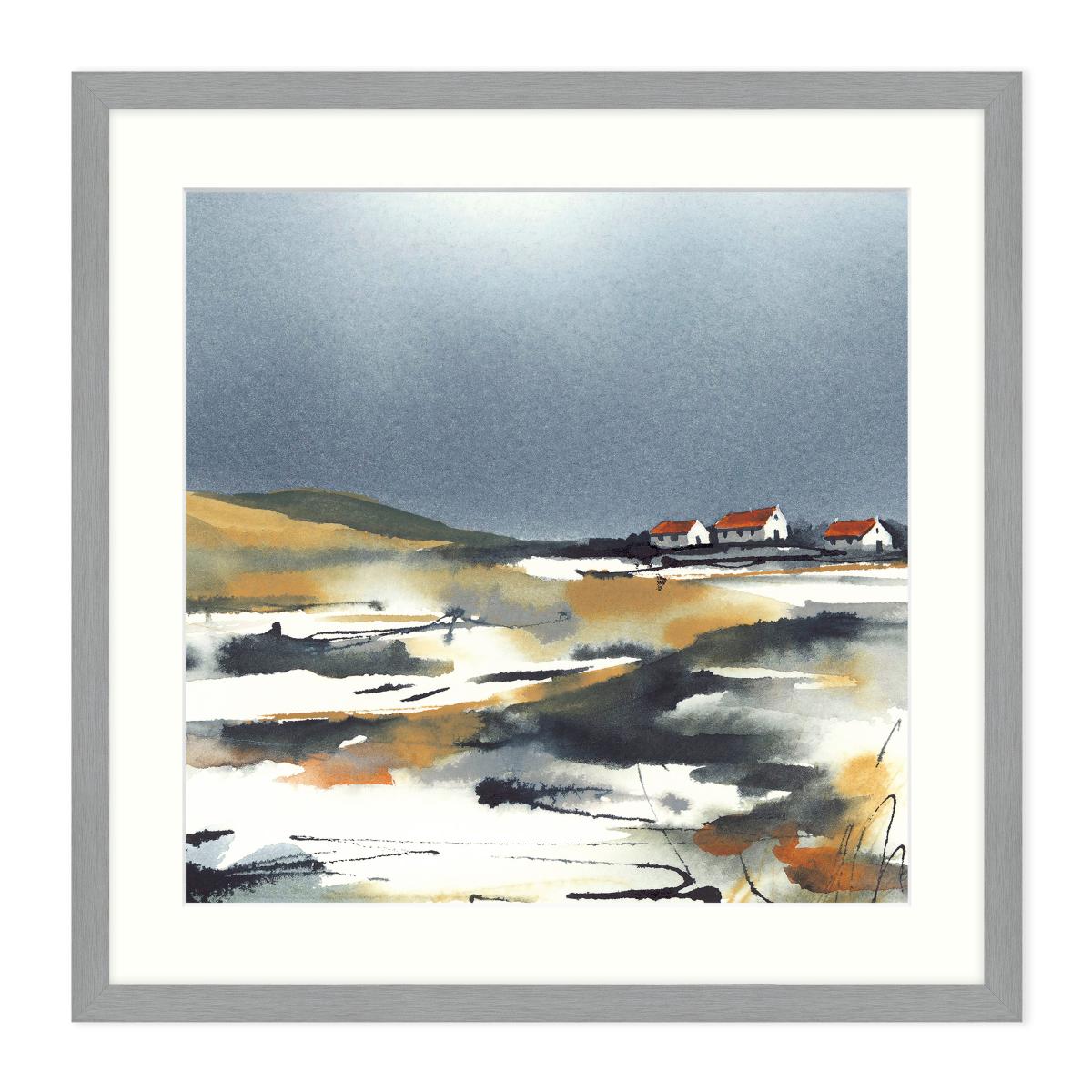 Decorate your home with this abstract style print by Elizabeth Baldin, inspired by Scottish coastal scenes. With muted colours and ambiguous scenes featuring in this artwork, it’s easy to add this piece anywhere in the house for a subtle piece of décor and silver frame which adds a contemporary finish to this modern style of artwork.