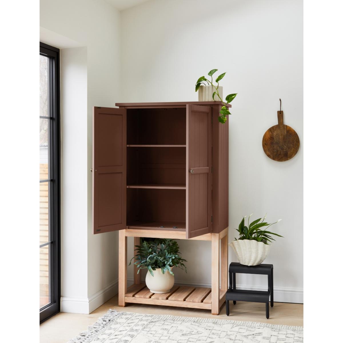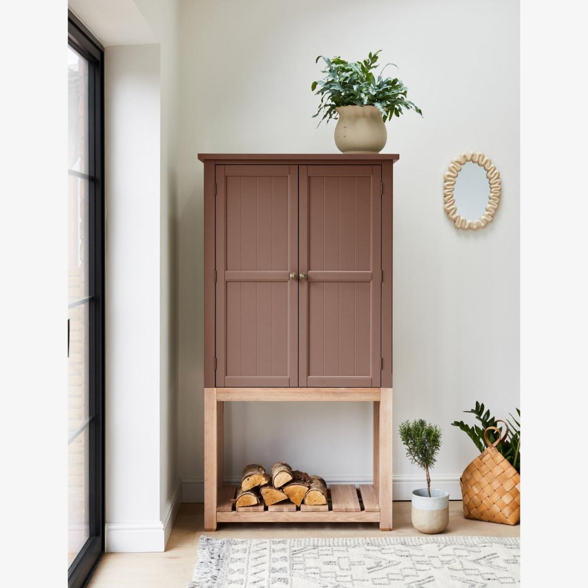 Maximise storage space and minimise clutter with our stand-alone Dusky Pink Wooden Kitchen Pantry Cabinet. This beautiful larder cabinet has removable shelves, two doors and an open storage shelf to suit all your kitchen needs. Our freestanding pantry cabinet offers a contemporary twist on the classic farmhouse interior style with plenty of storage space for all your favourite dinner sets, such as the Pearl Stoneware Collection and the Scalloped Edge Tableware Set. Pair this pantry cabinet with our matching console table.