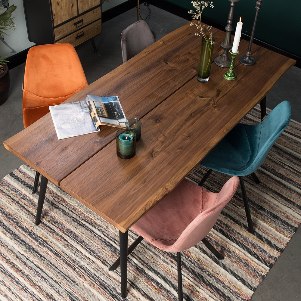 Gather your family and friends around the Alagon Dining Table and entertain your guests in style. Available in four sizes, this fabulous table is suitable for any size dining room, big or small. The uneven edges of the stunning walnut veneered table top give a rustic charm whilst the tapered steel legs add an industrial touch. A truly eye-catching addition to any home whether used in the dining room or as a kitchen table. Don't just stop at the dining table! Pair it with the Alagon Dining Bench to complete your dining set.