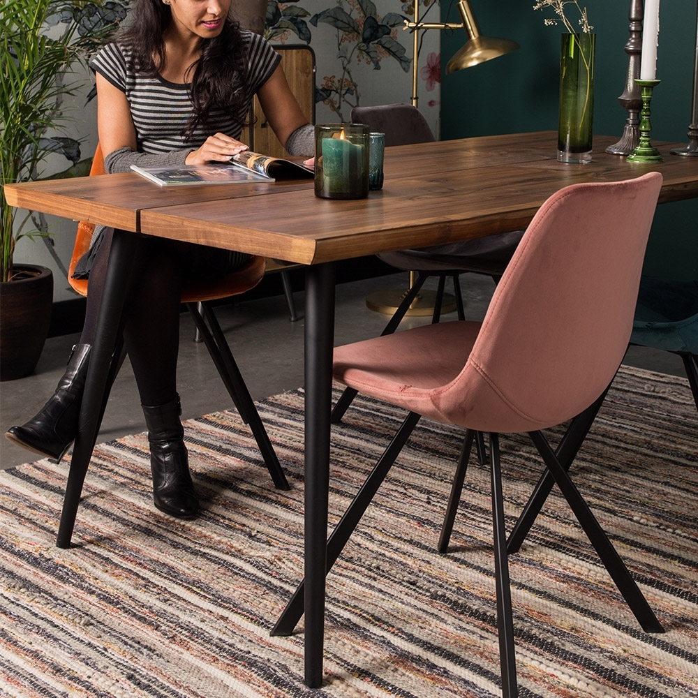 The Dutchbone Alagon dining table offers a great combination of rustic charm and contemporary style, making it versatile for various interiors. I love how its solid wooden top brings warmth and texture to a space, while the black legs add a modern edge. It works particularly well in industrial, Scandi, or pared-back minimalist settings, but can also be dressed up with colourful or tactile tableware for a more relaxed, eclectic look. Practical styling tips include pairing it with complementary wooden or metal chairs, and adding a runner or placemats to protect the surface while creating a styled focal point. Its size makes it suitable for everyday meals or intimate dinner parties, fitting comfortably in medium-sized dining rooms or open-plan kitchens.