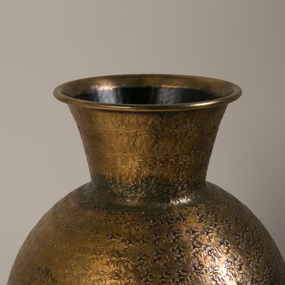 The Bahir Vase from Dutchbone is a vase that doesn't need flowers to be a statement piece, it will make an impact without any help. With its stunning antique brass finish and stamped decorative pattern, this vase will shine all on its own. Perfect in the hallway, living room or dining room, the gorgeous finish is sure to turn heads whilst also adding a rustic and oriental feel.