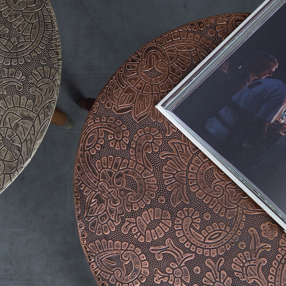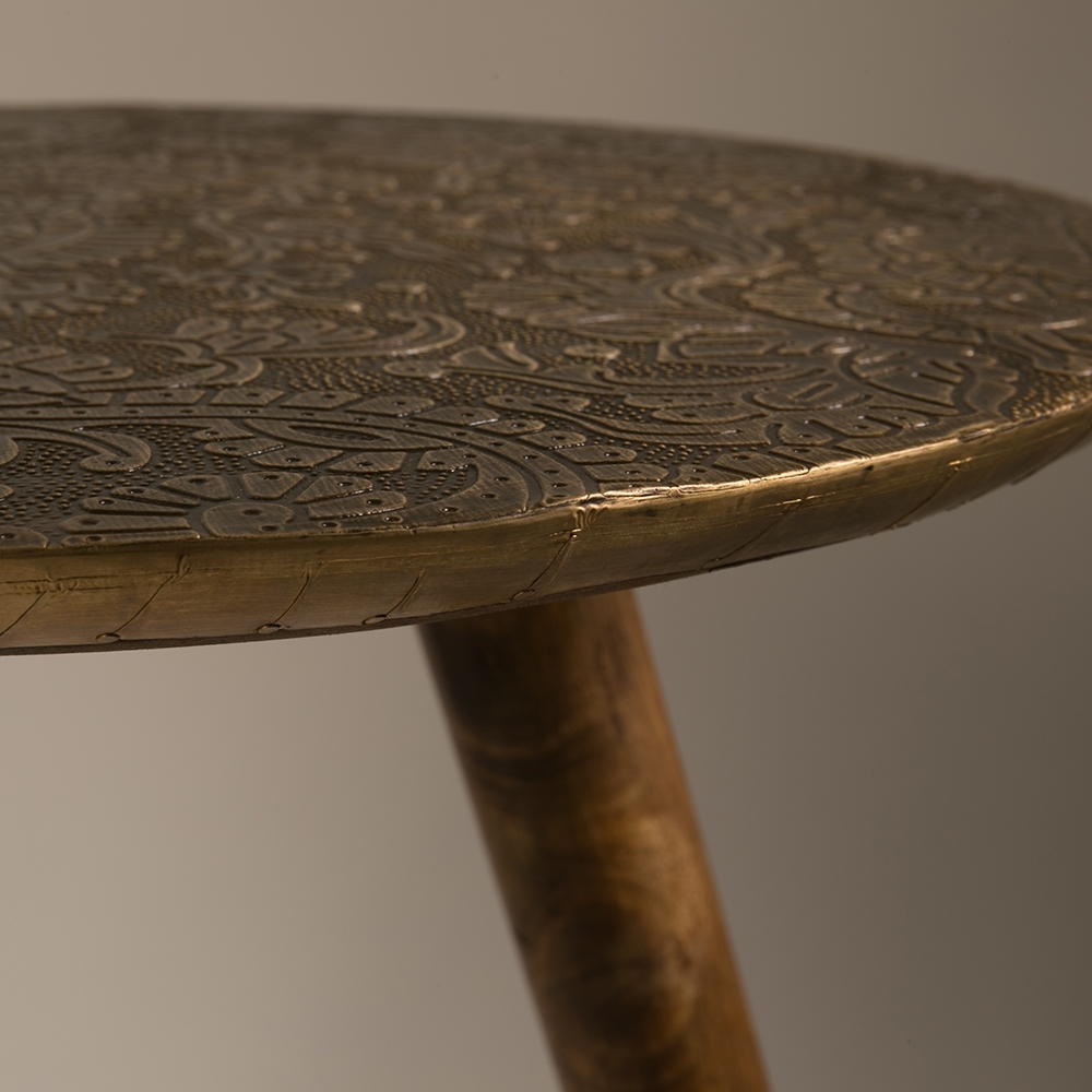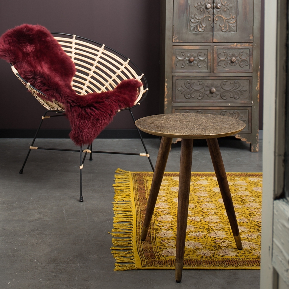 Dutchbone have taken the techniques used by their impeccable wood-carvers in the Dunbar region of India, and transferred their beautiful, ancient patterns onto metal Bast Side Table! This piece of furniture is available in a choice of Copper or Brass finish, these stunning hand-embossed tables are a unique way to bringinterior design trends from around the world into your home - metallics, check, tribal embossed print, check, and dip-dyed furniture feet, check! The Bast Side Table even mixes man-made and natural materials, as the main table is made from solid Sheesham wood, with an embossed steel sheet laid over the table top. Could this table be any more on-trend?
