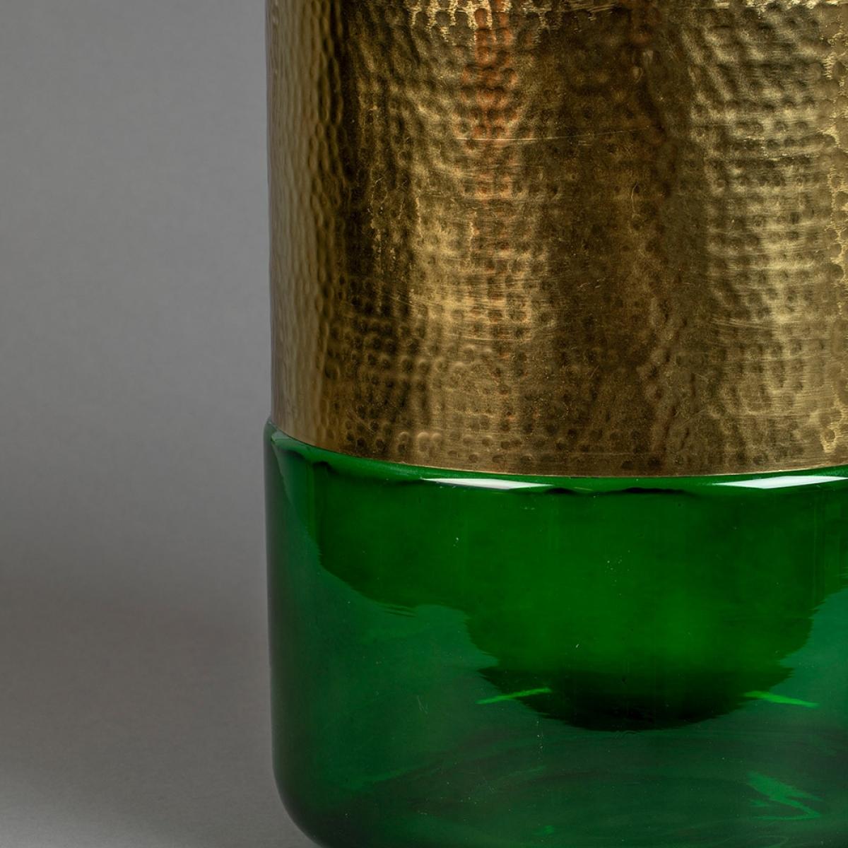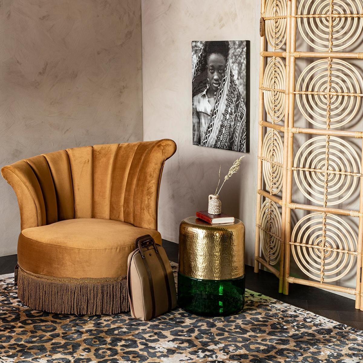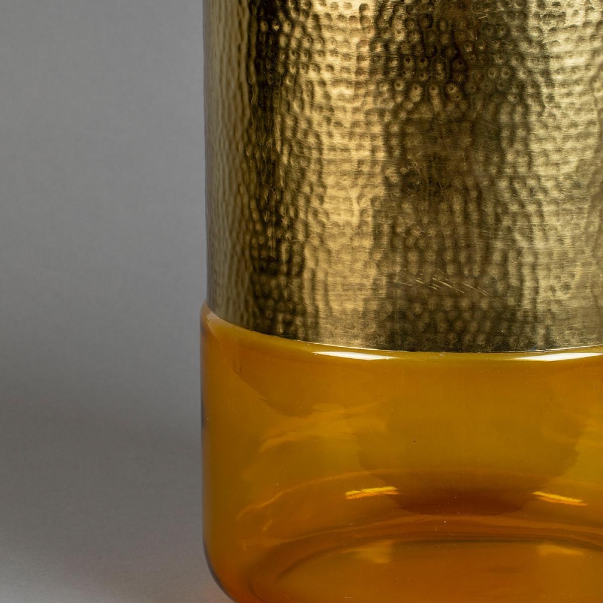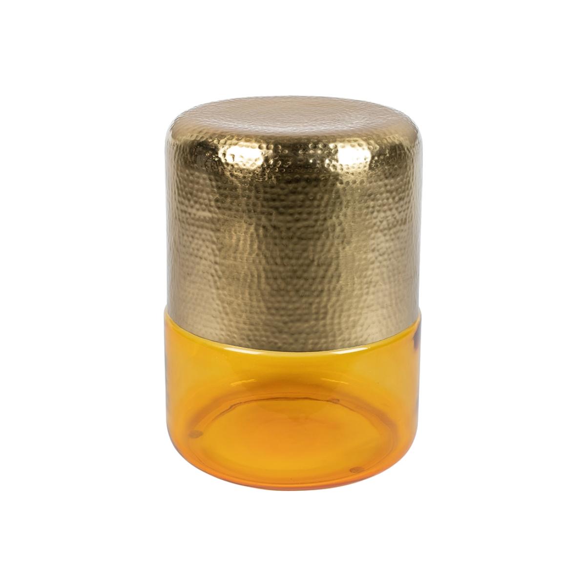 The Cave Side Table from Dutchbone will capture all artistic individuals hearts! Featuring a beautiful tinted glass bottom and hammered brass top, the combination is a perfect balance. This capsule shape table will inject energy to any minimalist interior, whilst being a work of art in itself and a real feature to introduce into your home. With both colours being equally as powerful yet subtle, fitting into your existing home interior will be a breeze. You'll love this side table whether it's for your morning cuppa or to display your favourite vase, either way, we guarantee you'll love it!.