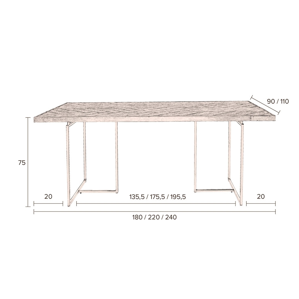 Herringbone is back! Conjuringhazy memories of happy school days, the stunning Dutchbone Class Dining Table brings back all that is great about this retro pattern into a stunning piece of modern dining room furniture. The eye-catching acacia wood veneer table top showcases the grain of the wood and catches the light to enhance the warmth of the colour. The stylish geometric brass base adds a touch of antiquated elegance and can be enhanced further with gold accessories and pendant lighting. Available in 2 sizes, and as a Coffee Table version, this unique, retro furniture item truly does come top of its Class!