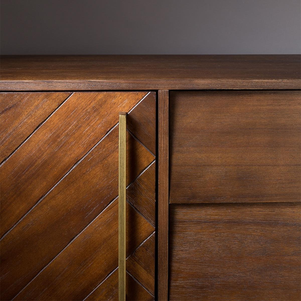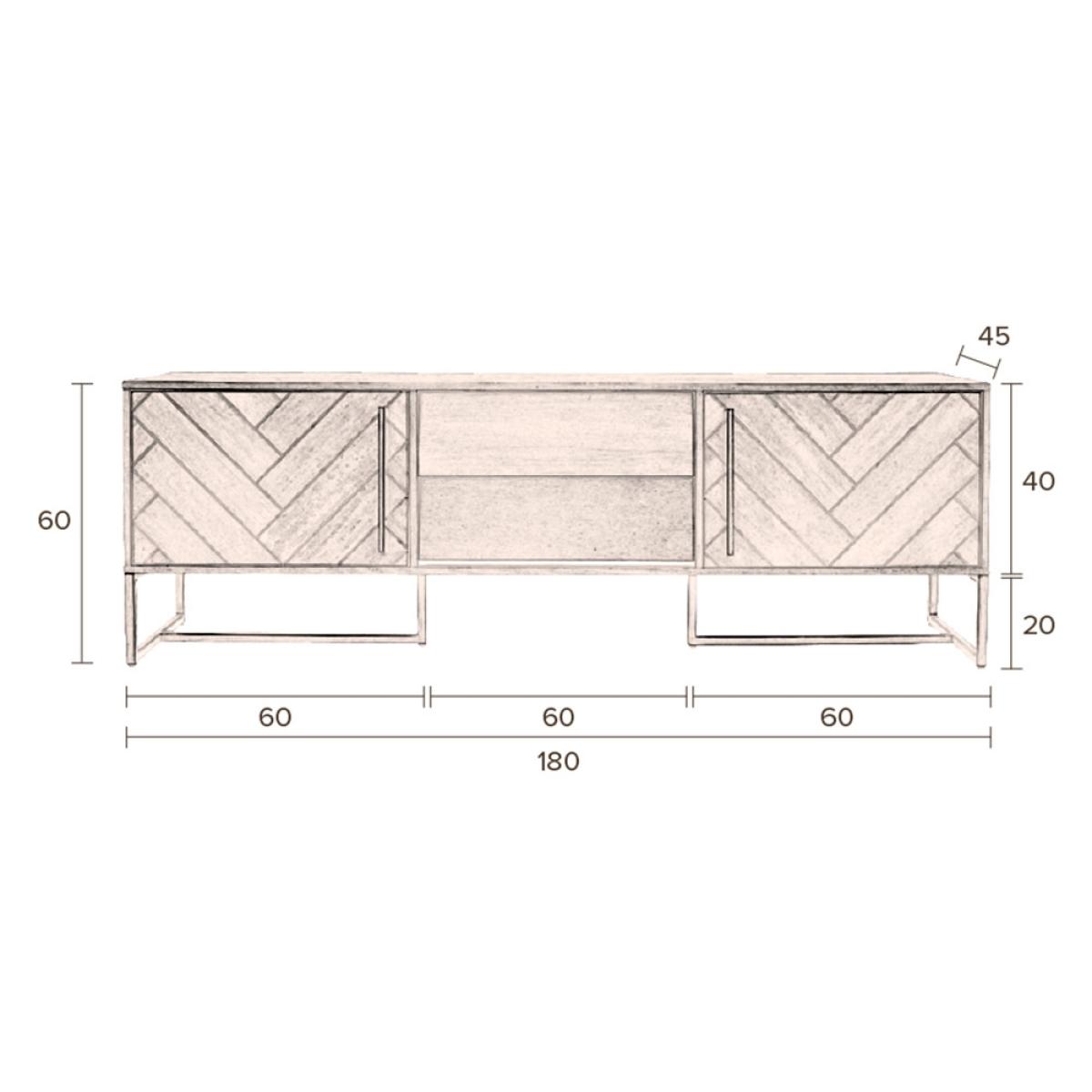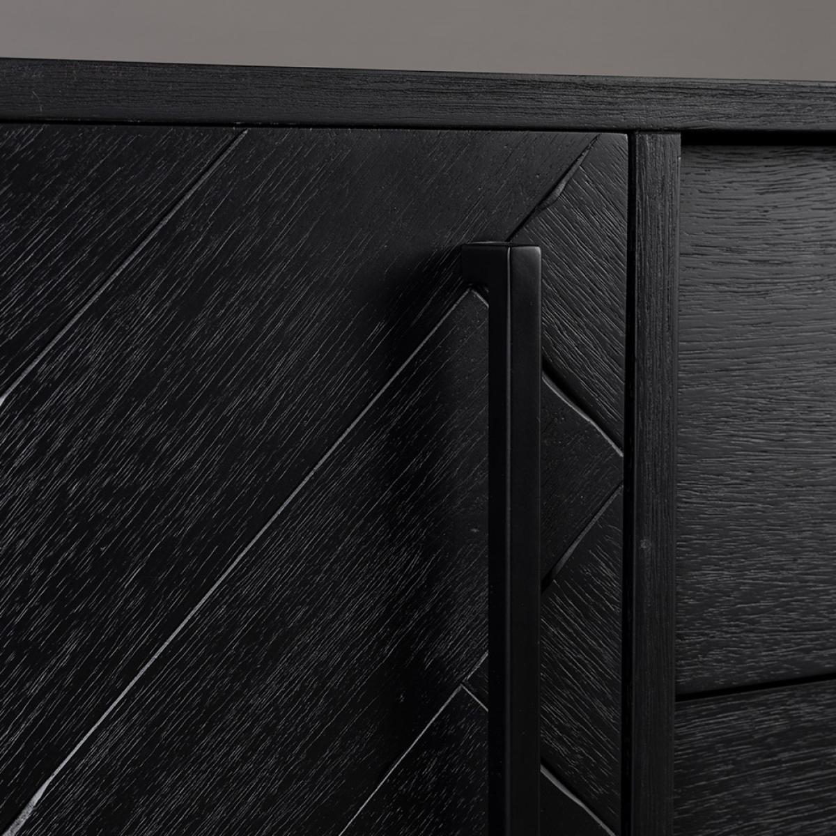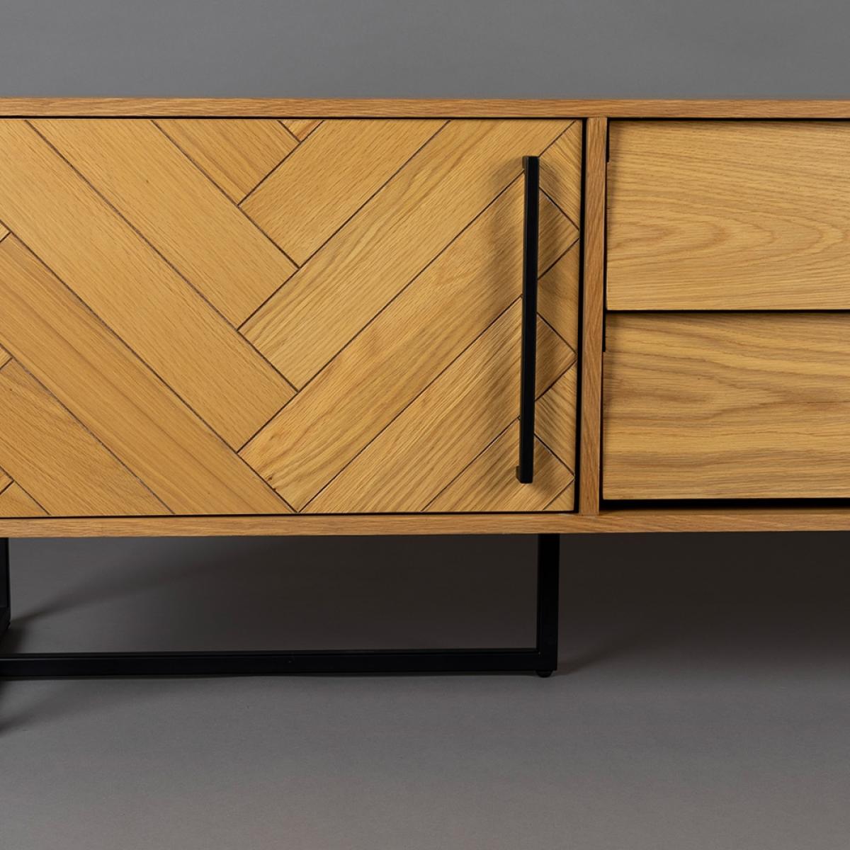 Herringbone is back! Conjuring hazy memories of happy school days, the stunning Class Low Sideboard from Dutchbone brings back all that is great about this retro pattern into a stunning piece of modern furniture. The eye-catching. Wooden veneer, available in a choice of coloured finishes, showcases the natural grain and catches the light to enhance the design. The stylish geometric, metal base and handles add a touch of drama to your chosen space. Featuring plenty of storage behind the doors and drawers, style in the dining room, kitchen, hallway or living room as a media unit. Also available as a Dining Table, Coffee Table and shelf, this unique, retro furniture range truly does come top of its Class!.