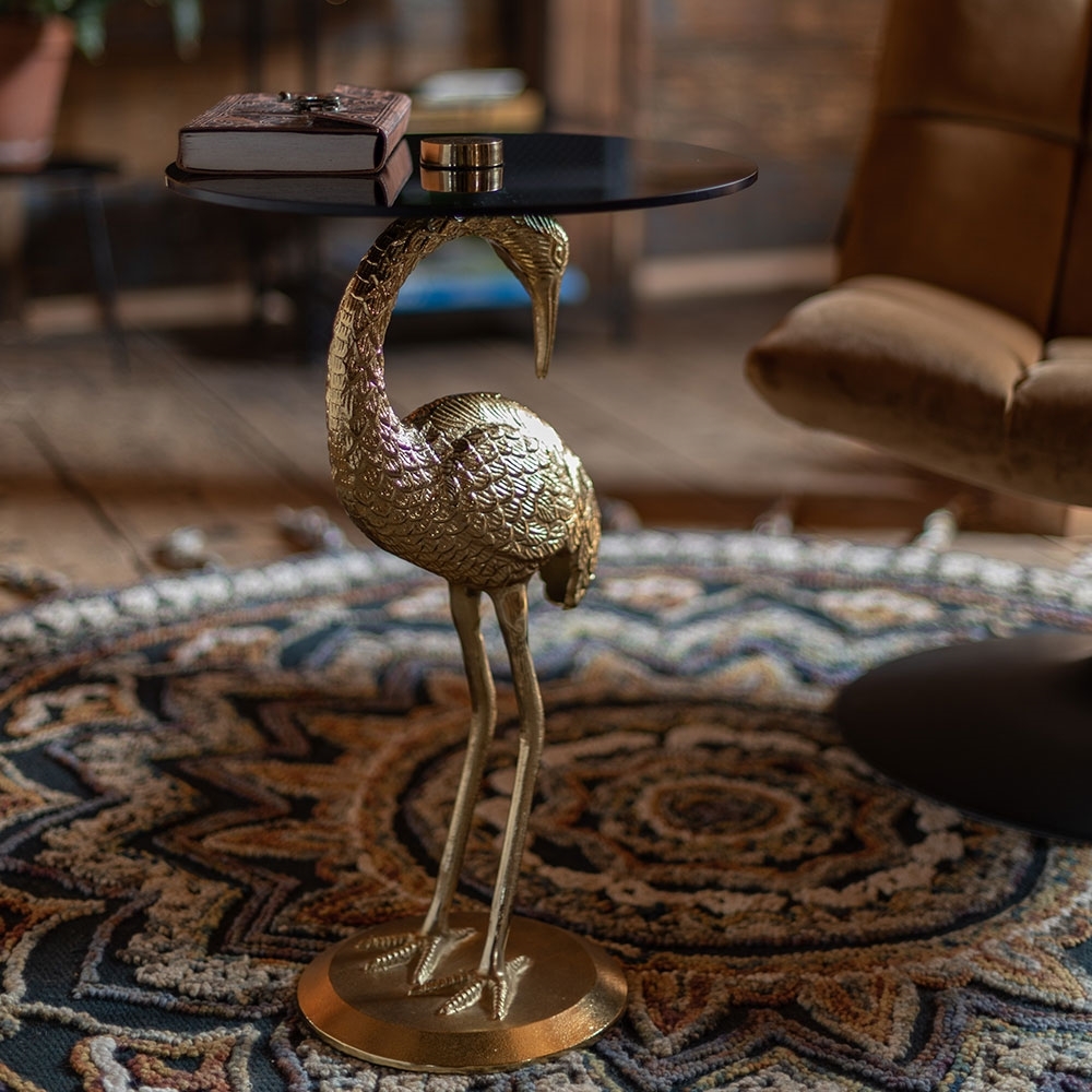 The Dutchbone Crane Side Table is a table that's been made to stand out! Not only a statement piece but also a handy addition, this unique and wonderful piece of furniture is sure to turn some heads. In either a black powder coated finish or gold colour plated finish with a black glass tabletop, the ornamental bird design of the stand is sure to bring some character to your home. Ideal next to that favourite reading chair for popping that latest read, a cuppa or cheeky glass of wine, need to keep those simple pleasures close by! Whether you place it in the living room, bedroom or hallway, this little table will ooze style.