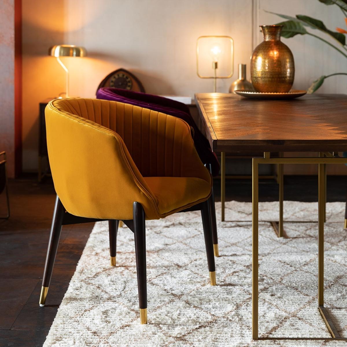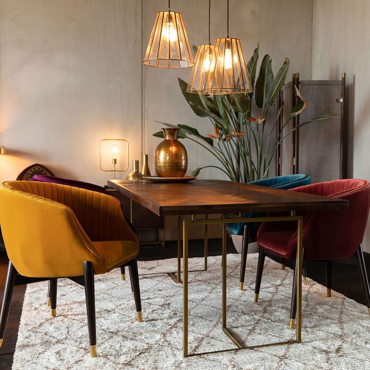 Add some luxury and elegance to your dining experience with the Dolly Armchair from Dutchbone. The rich colours paired with the dark wood and brass details give this chair a retro styling that would look stunning around any dining table. Upholstered in a choice of four gorgeous velvet colours, whether you opt for just one colour or mix and match to create a funky look, these chairs are sure to add some opulence. So gather your favourite people, sit down and get comfy.