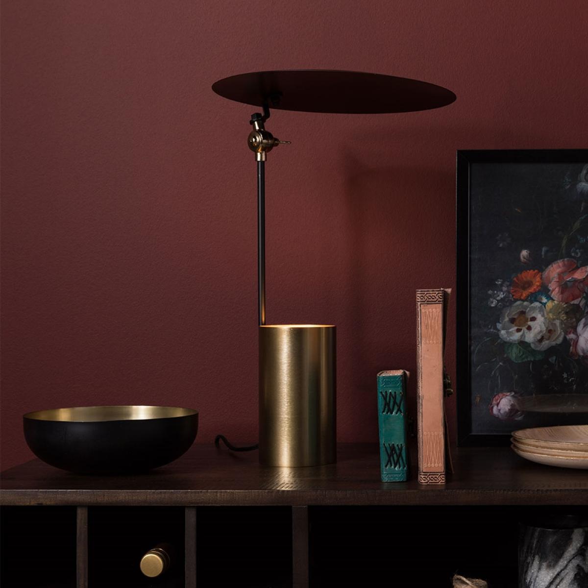 I love this lamp for its clean, modern silhouette with a touch of luxe thanks to the brushed gold base. It's particularly versatile, fitting well in both contemporary and eclectic interiors. It works brilliantly as a statement piece on a side table in a living room or as task lighting in a home office, providing both function and style. For styling tips, consider pairing it with matte black or neutral-toned furnishings for a sophisticated look, or juxtapose its metallic finish with textured fabrics to add depth. Its sleek design also makes it an excellent choice for bedrooms or minimalist spaces where lighting should be unobtrusive yet impactful.