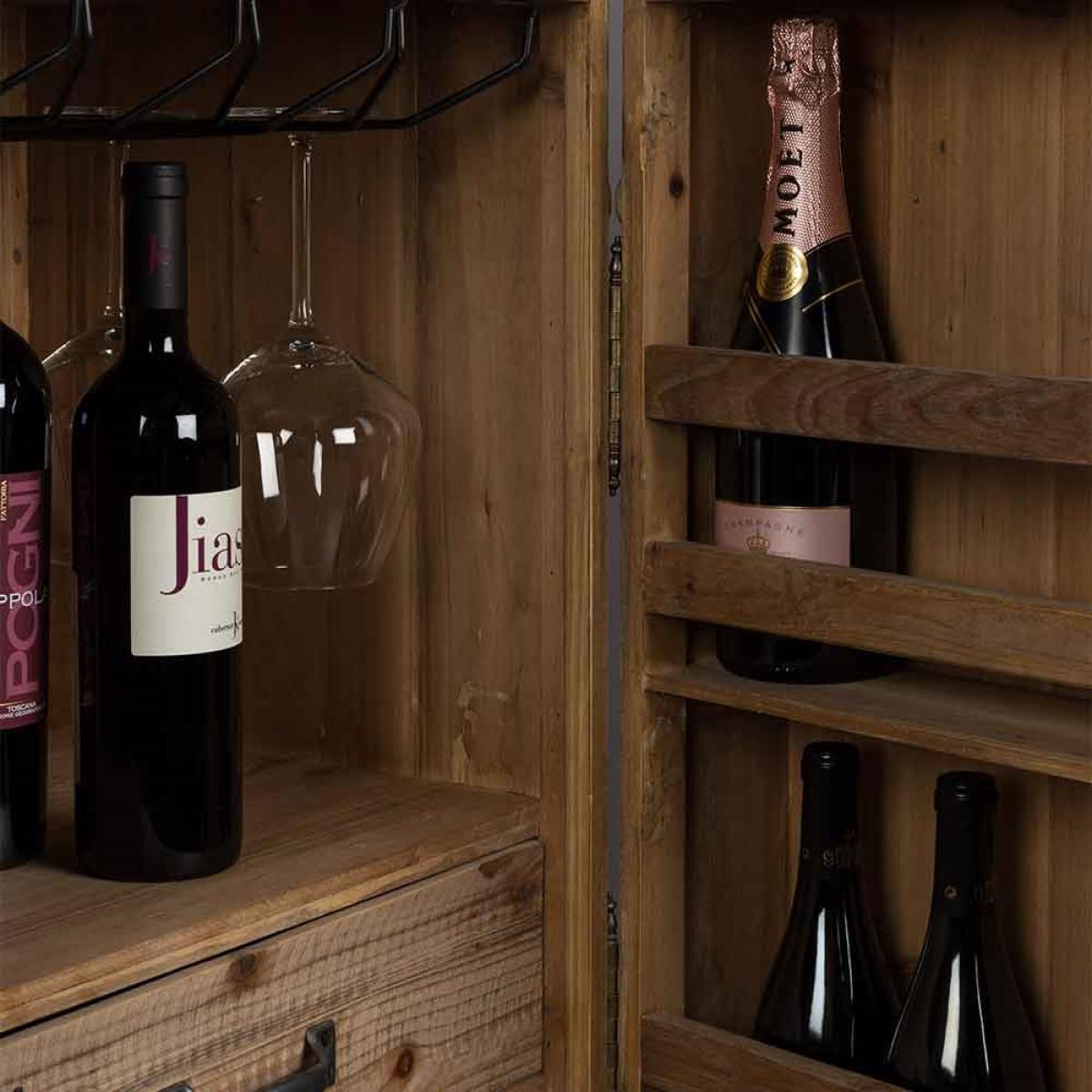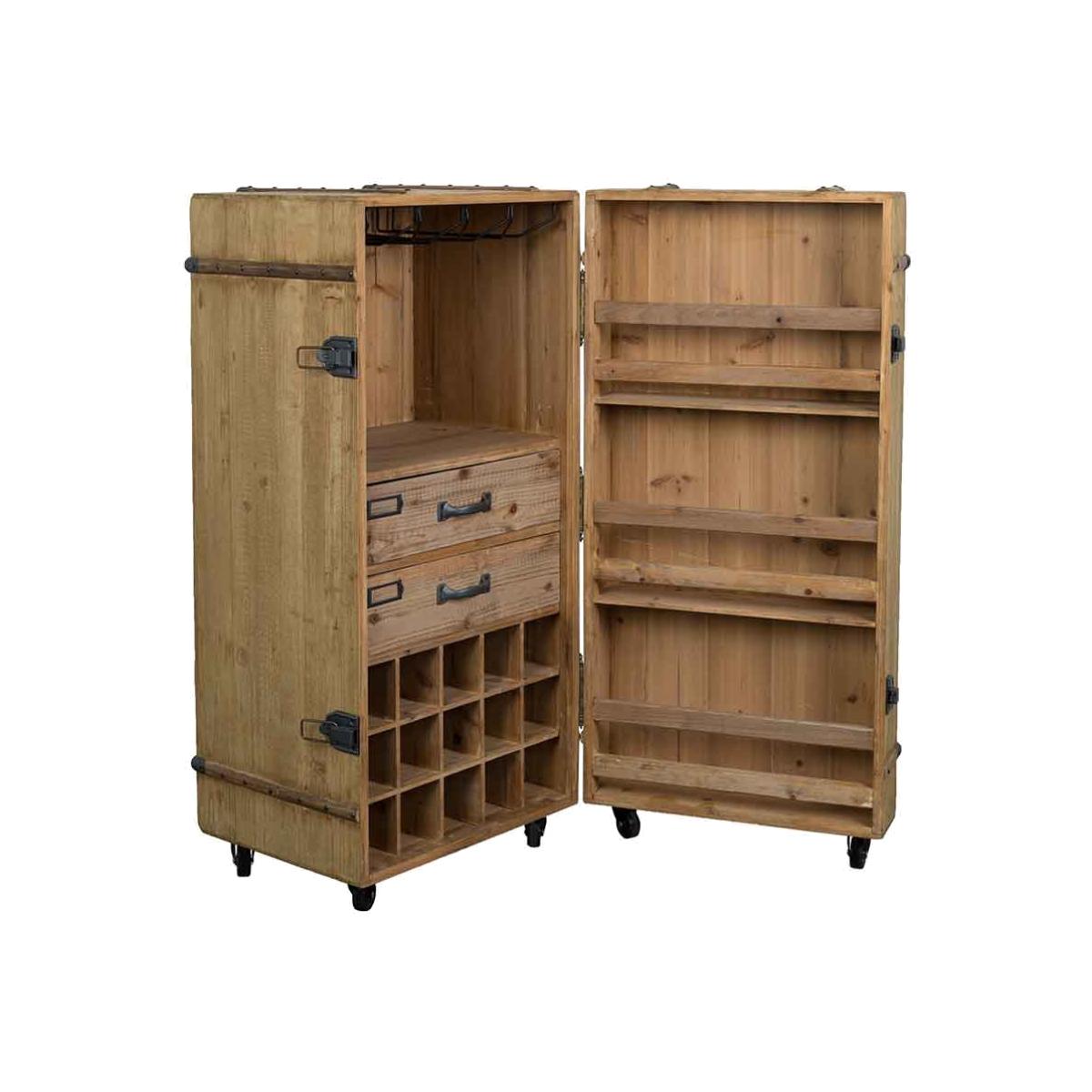 The design of this beautiful Dutchbone Lico Drinks Cabinet was born from travels afar, where suitcases and trunks are very much a necessity, what better way to improvise than turn a trunk into a drinks cabinet. Voila! House your vintage whiskey and wine, glasses and accessories all together, hidden from sight, until the party starts! Made from Solid Fir Wood with a distinct antique look, this drinks bar has space to store wine glasses, 2 drawers with metal handles and a bottle compartment. Why not complete the look with the Wine Glass Holder.