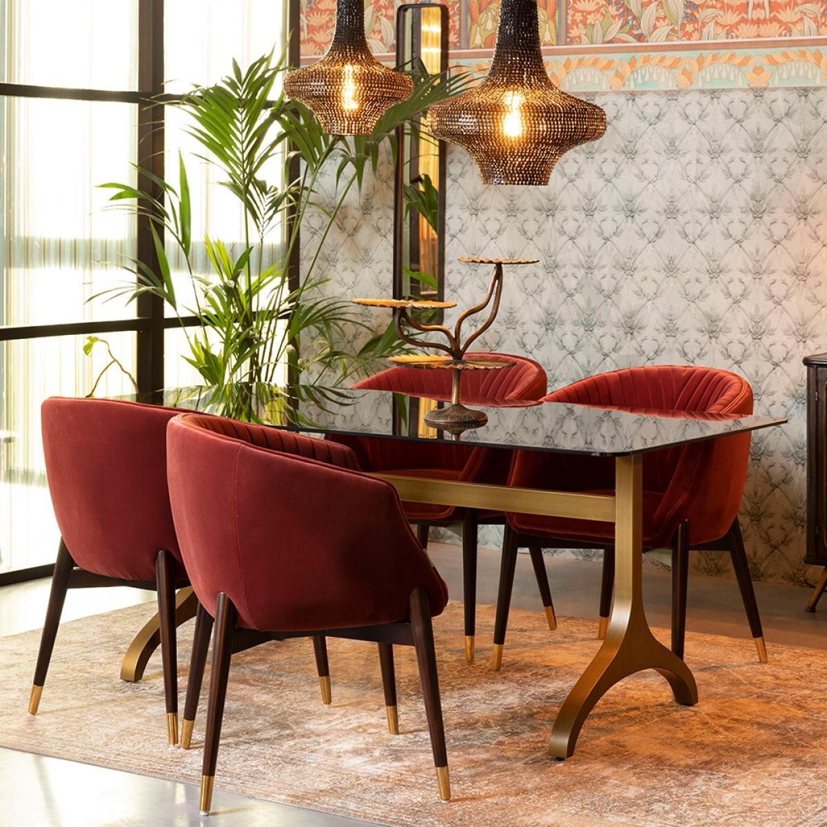 I love this piece because of its sleek combination of materials-its dark tabletop contrasted with elegant gold legs creates an understated yet luxurious look. It works particularly well in contemporary or industrial interiors, but can also add a surprising touch of sophistication to a more eclectic space. Practical styling tips include pairing it with minimalist chairs to keep the look clean, or layering with textured tableware and centrepieces for more visual interest. The size and shape make it versatile for both everyday dining and more formal gatherings, so it’s really about how you accessorise to suit your interior style.